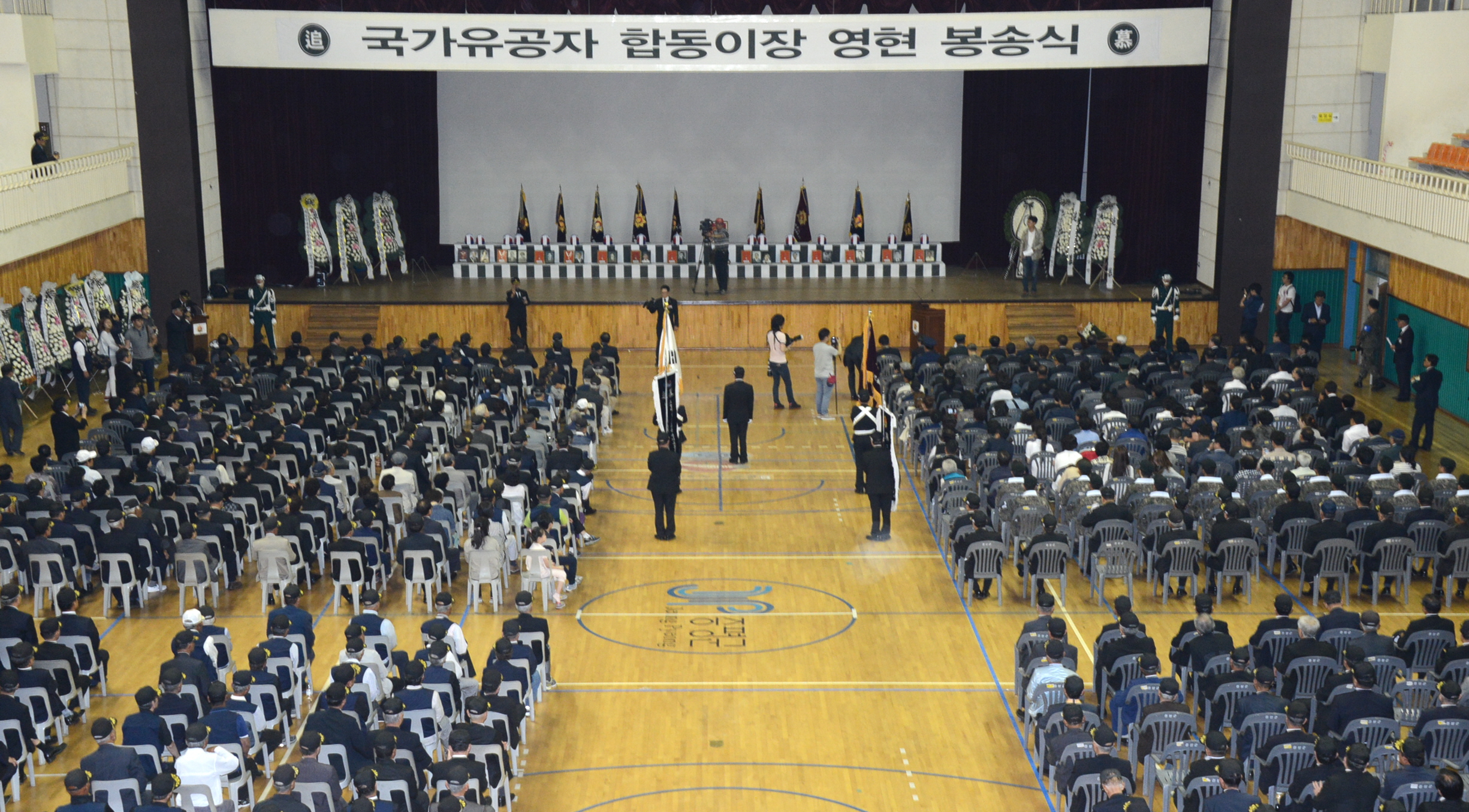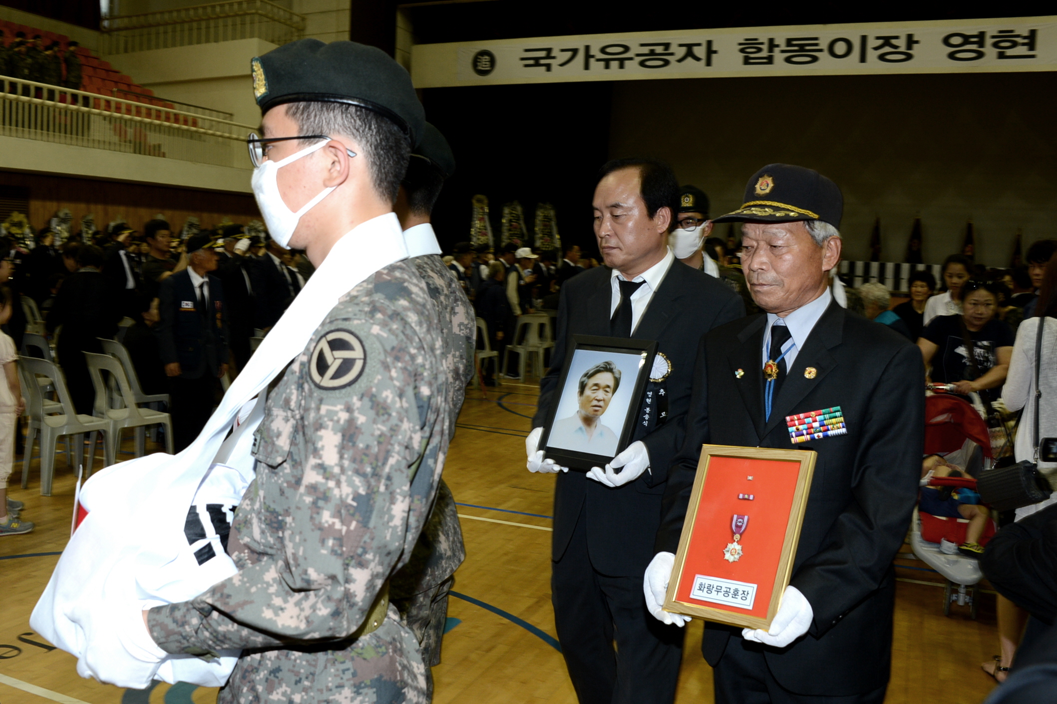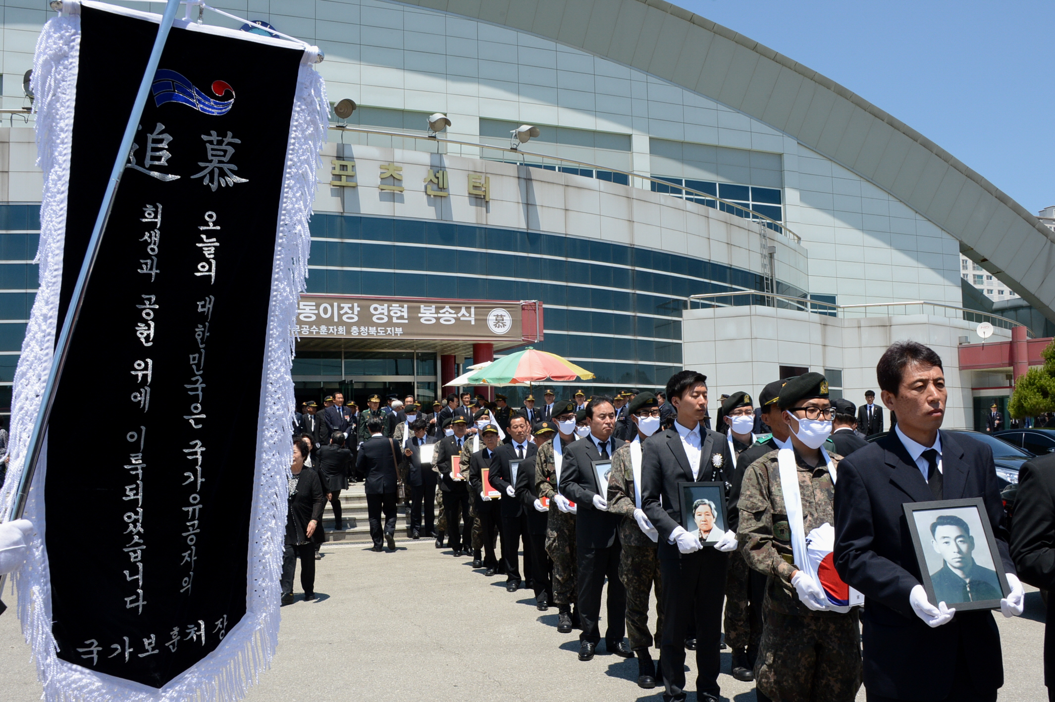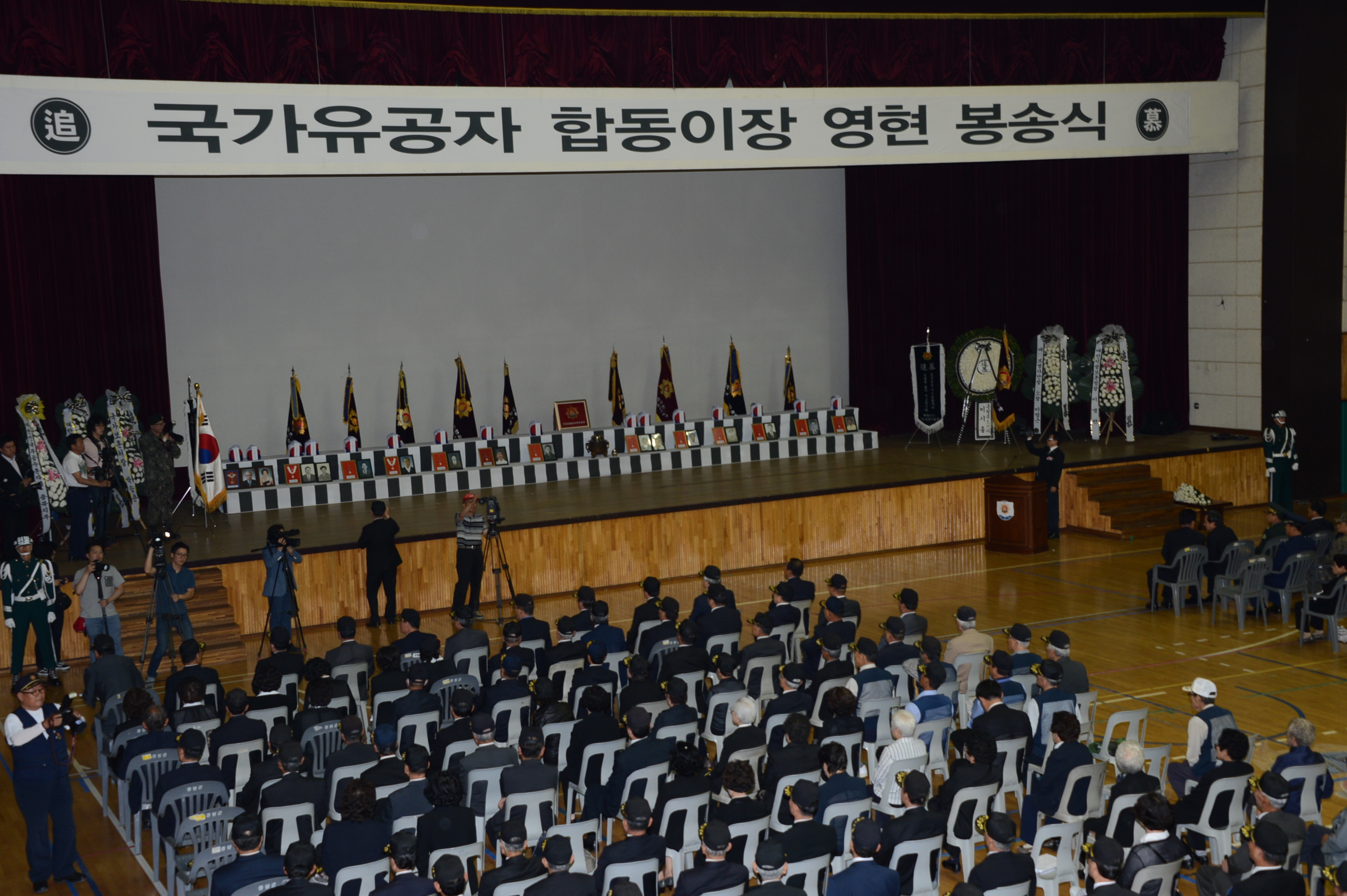 증평군은 27일 증평군 스포츠센터에서 이시종 도지사, 홍성열 증평군수, 충북지부 무공수훈자지회를 비롯해 각 보훈단체회원, 유가족 등 1,000여명이 참석한 가운데 국가유공자 합동이장 영현 봉송식을 가졌다. [보도자료실 참조]
