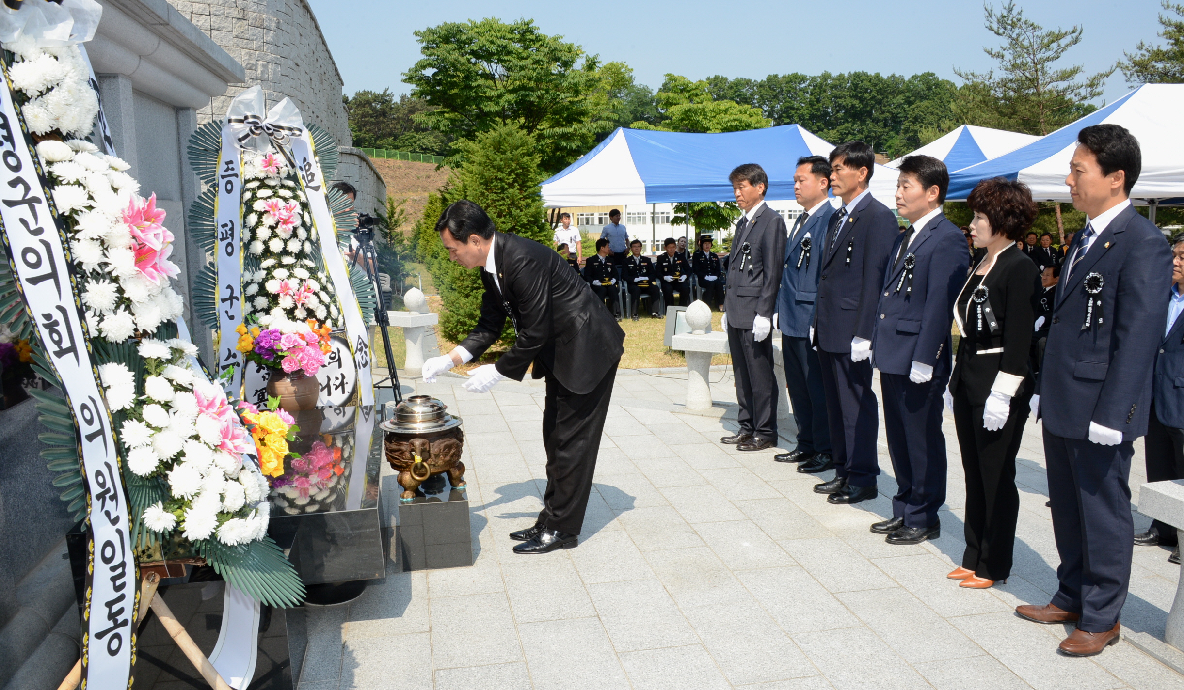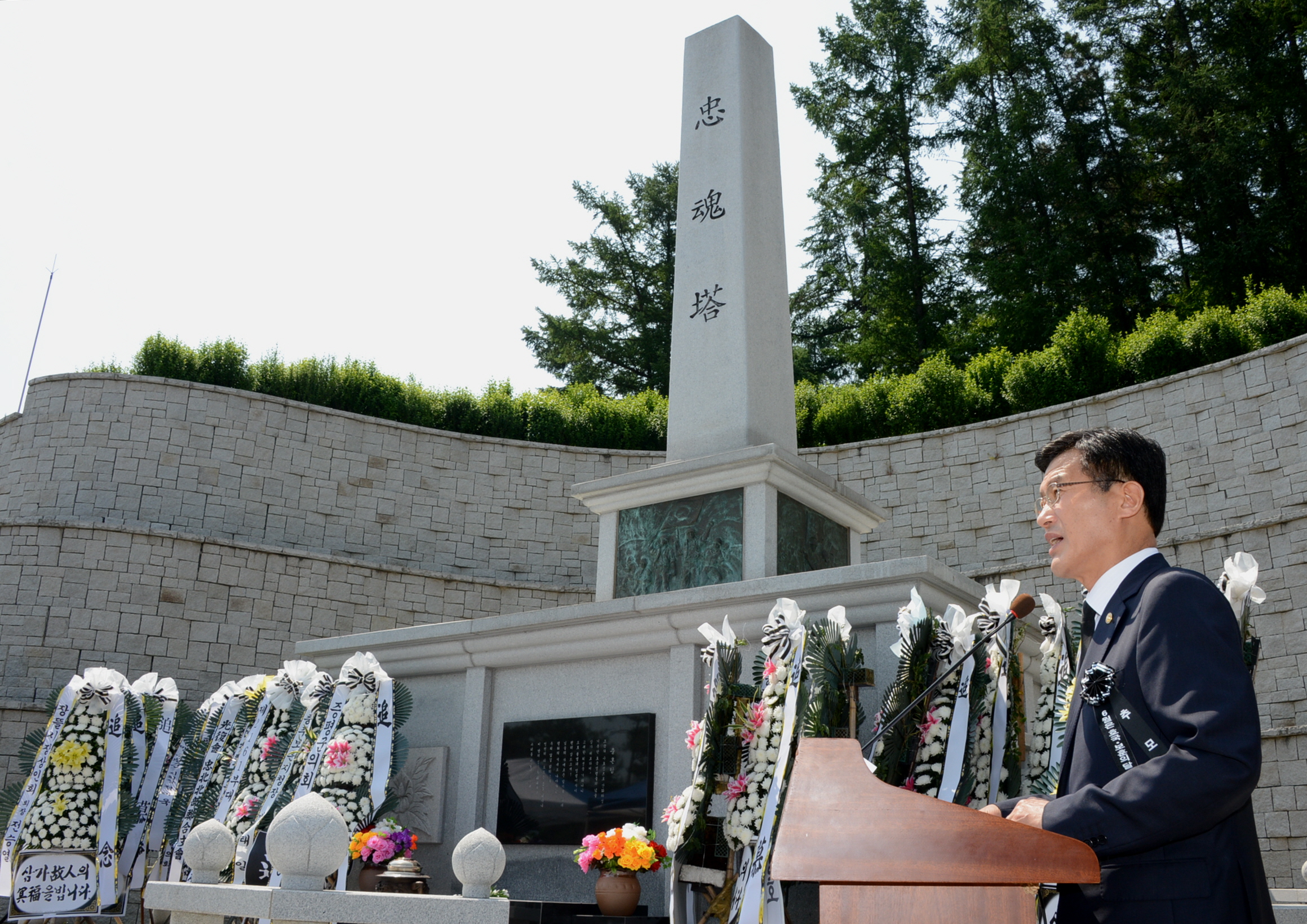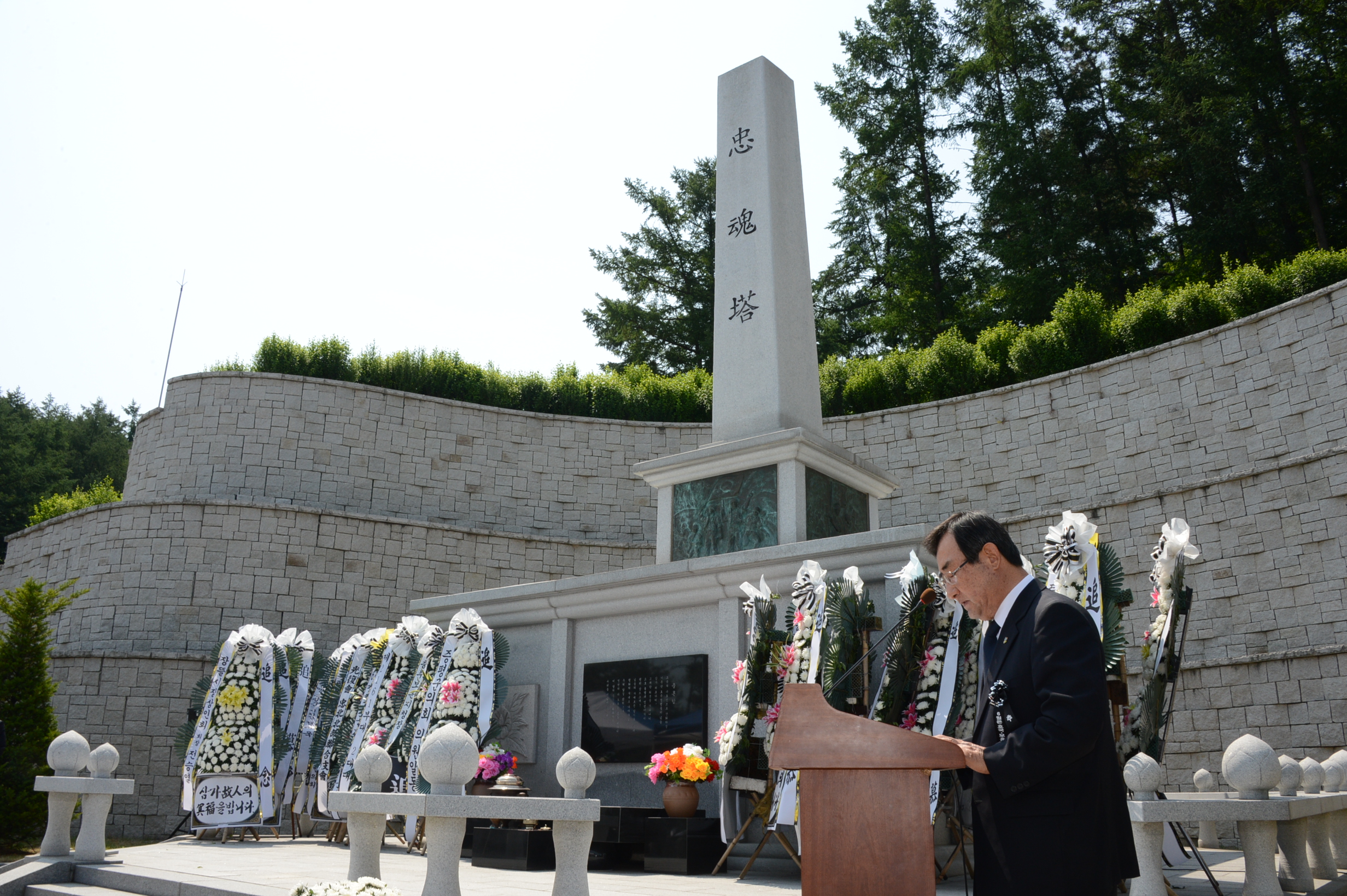 증평군은 6일 오전 10시 보건복지타운 내 충혼탑에서 홍성열 군수, 지영섭 군의장을 비롯해 지역 내 보훈 단체장, 보훈 가족과 군민 등 300여명이 참석한 가운데 국가를 위해 헌신하신 호국영령들의 넋을 기리는‘제60회 현충일 추념 행사’를 가졌다.[보도자료실 참조]