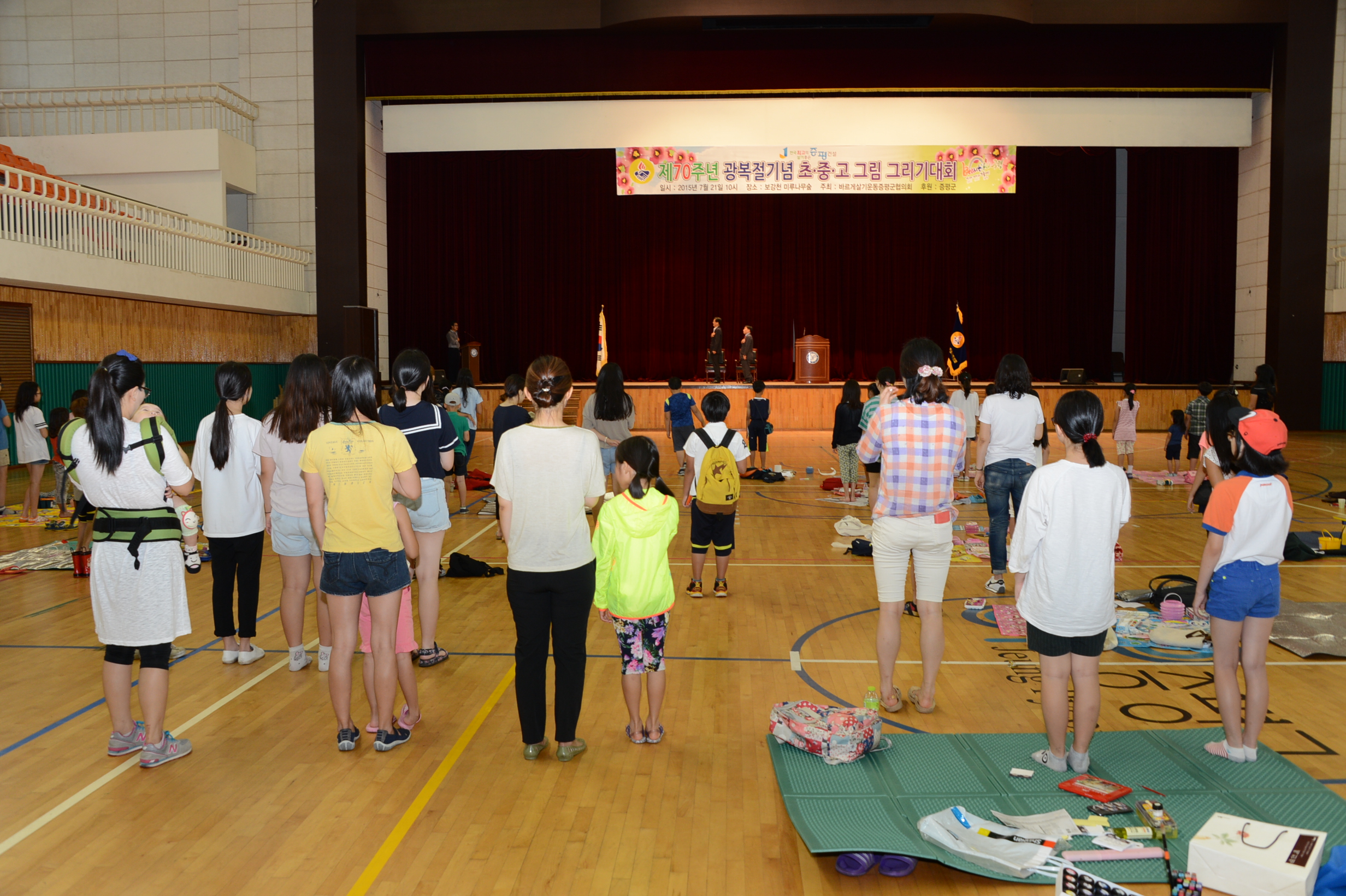 증평군 바르게살기운동증평군협의회(회장 연태희)는 광복 70주년을 기념하기 위해 21일 오전 10시 증평군 스포츠센터에서 지역 내 초·중·고 학생 120명이 참여한 가운데 그림그리기 대회를 개최했다. (보도자료실 참조)