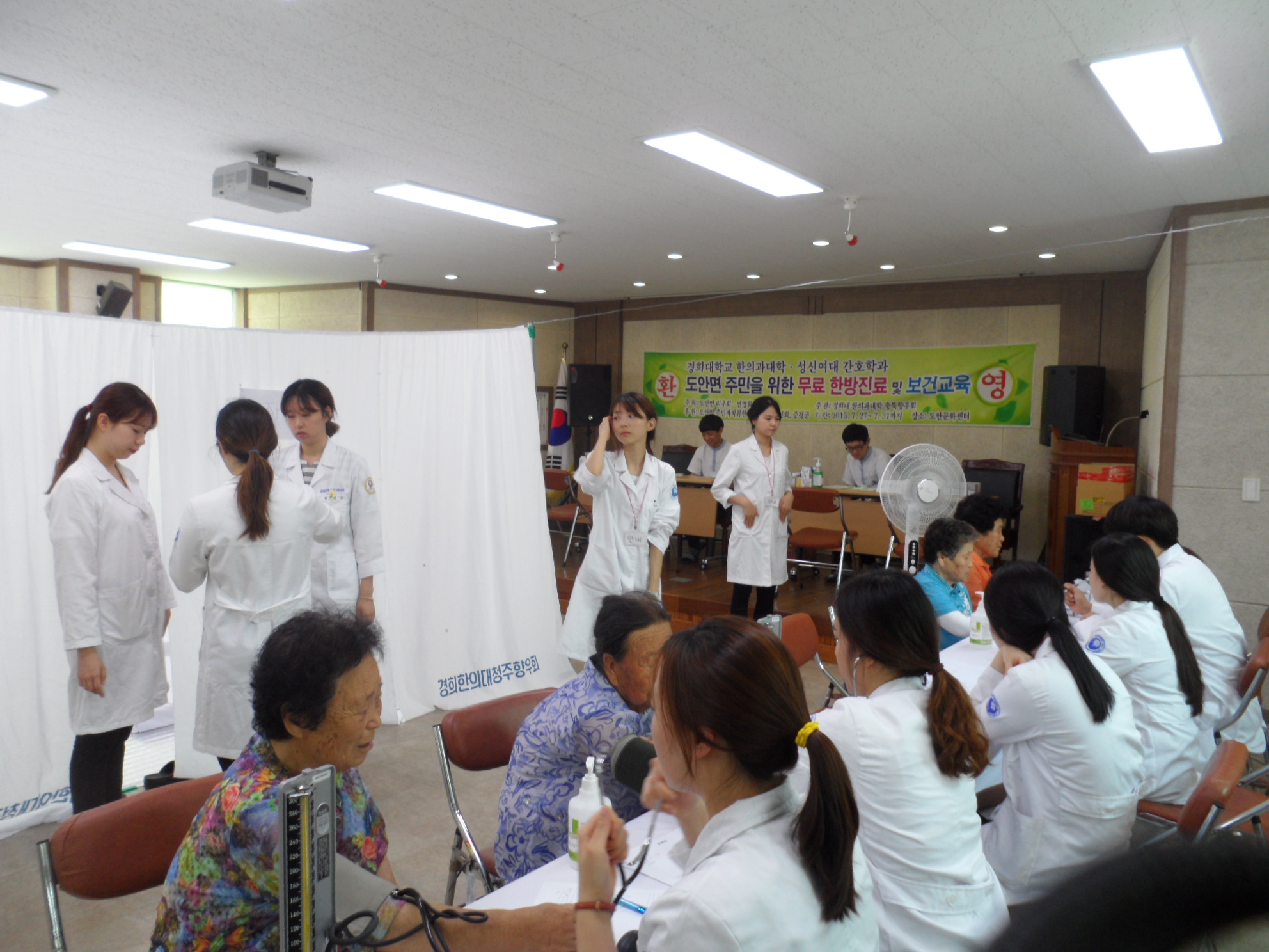 경희대학교 한의과 대학 및 성신여대 간호학과 재학생으로 구성된 한방 의료 봉사단 26명은 28일부터 30일까지 증평군 도안면에 위치한 도안문화센터에서 지역주민을 위한 한방무료진료 봉사활동을 펴고 있다.