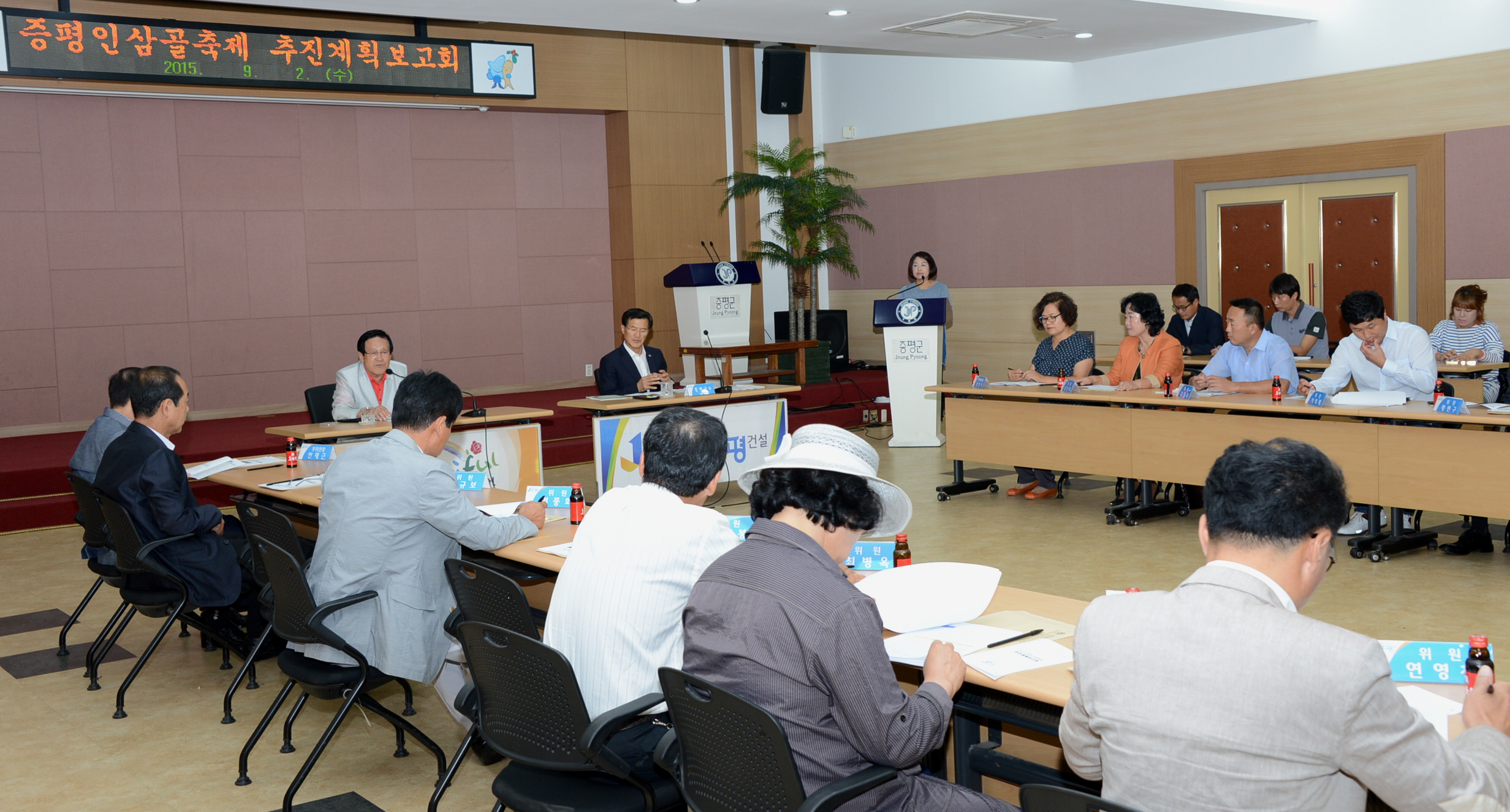 증평군은 2일 오후 2시 군청 대회의실에서 홍성열 증평군수, 최건성 문화원장을 비롯한 관련 추진위원과 관계 공무원 등 30여명이 참석한 가운데‘증평 인삼골축제’의 차질 없는 준비를 위한 축제 추진계획 보고회를 개최했다.(보도자료실 참조)