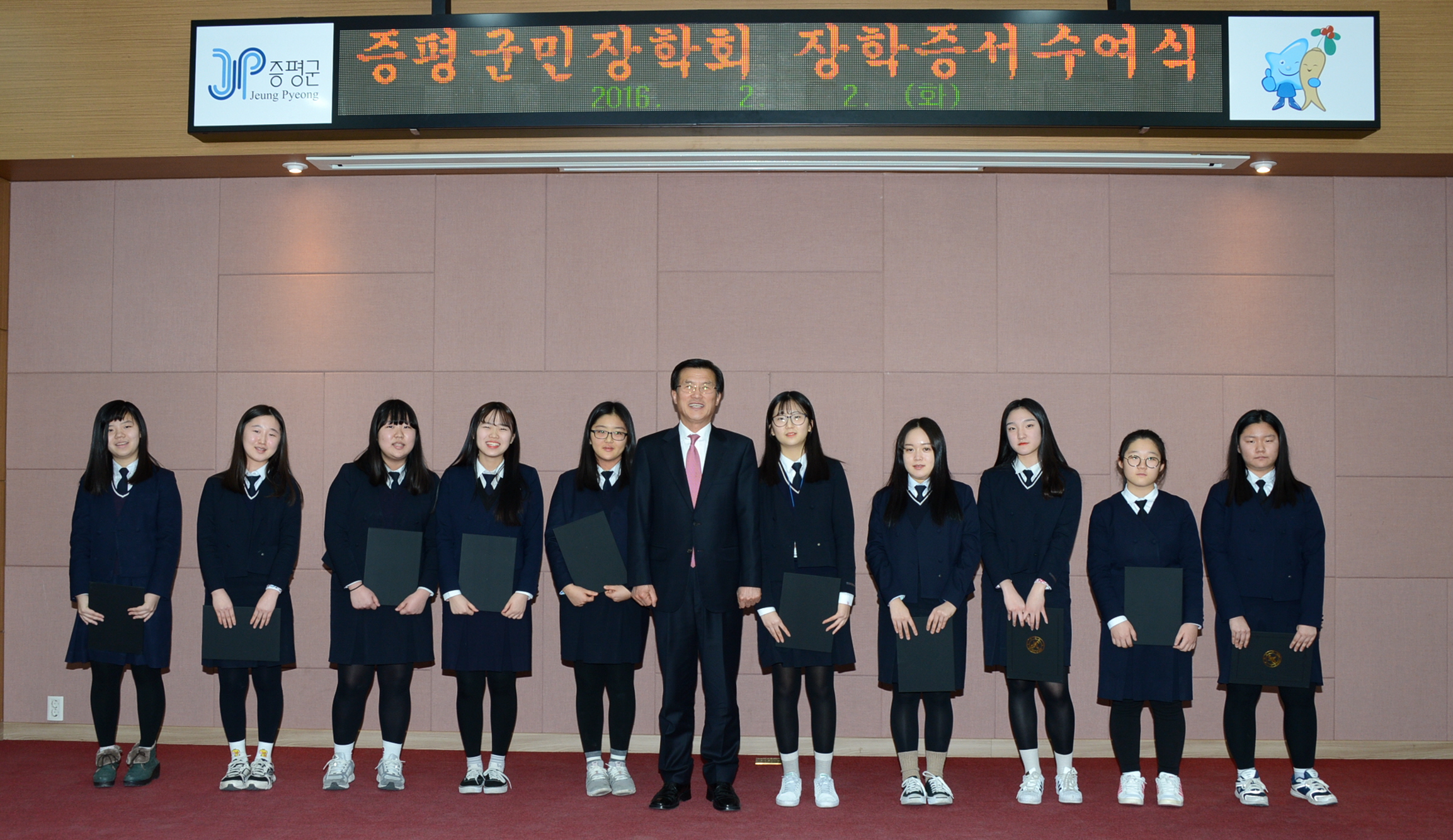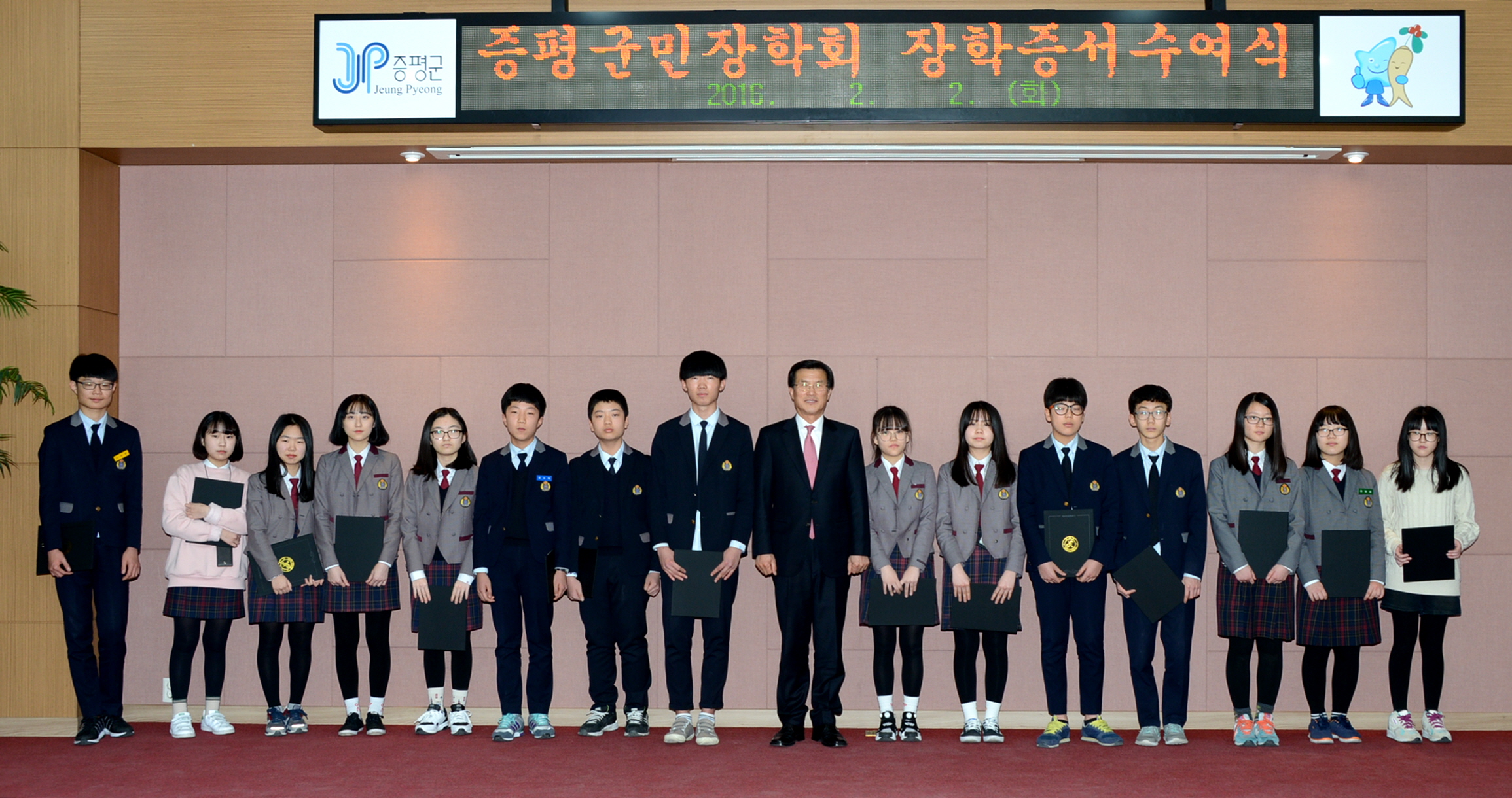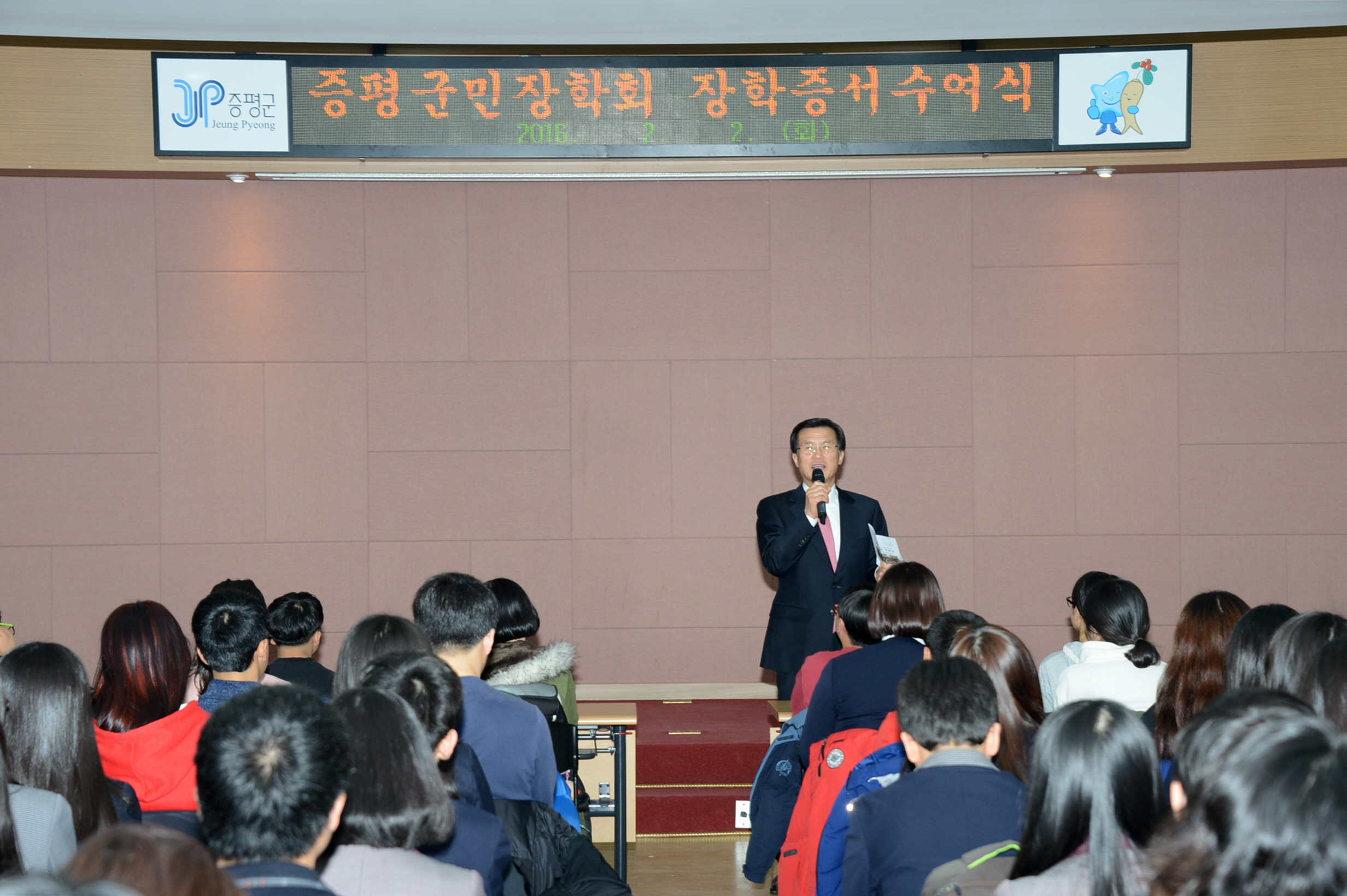 재단법인 증평군민장학회(이사장 홍성열 증평군수)는 2일과 3일 양일간에 걸쳐 증평군청 대회의실에서 2016년 장학생 장학증서 수여식을 가졌다.(보도자료실 참조)