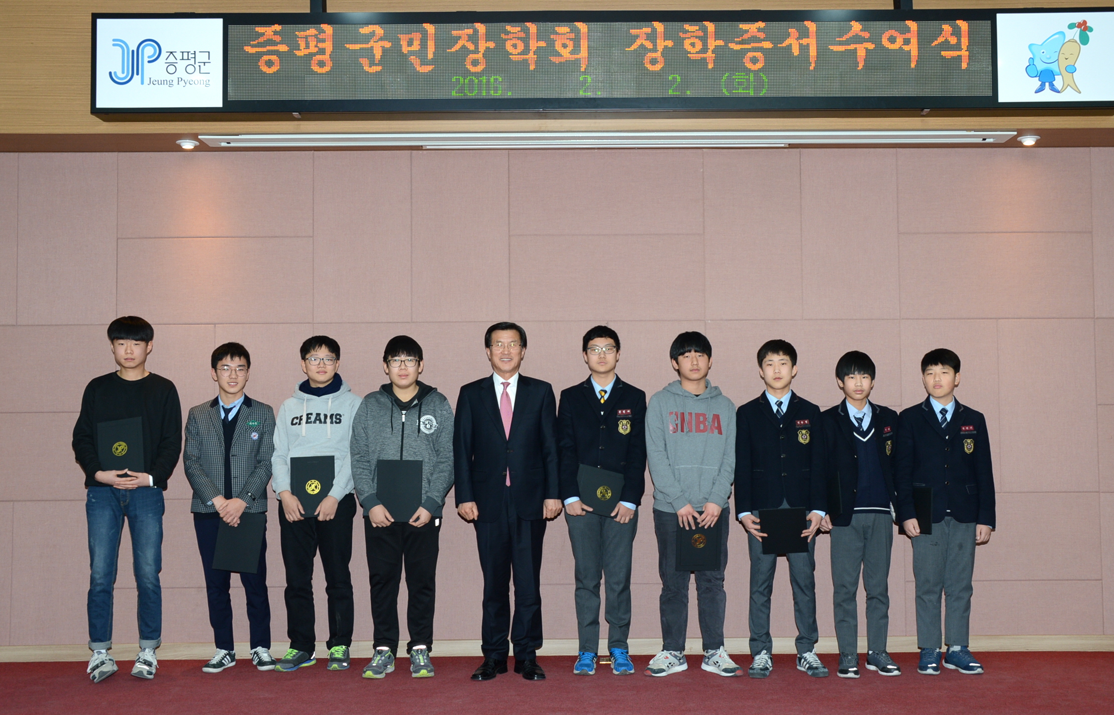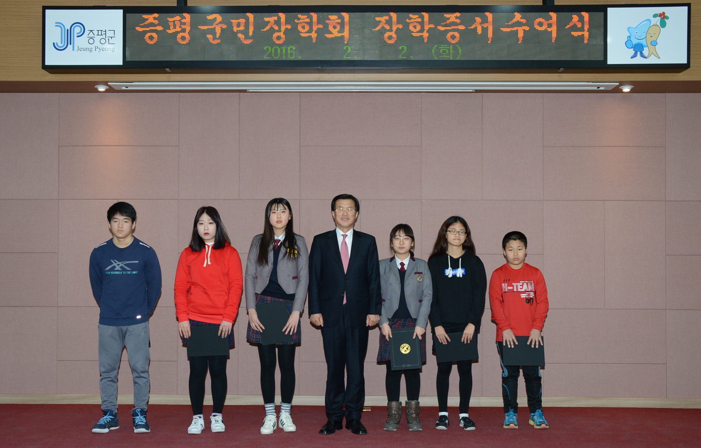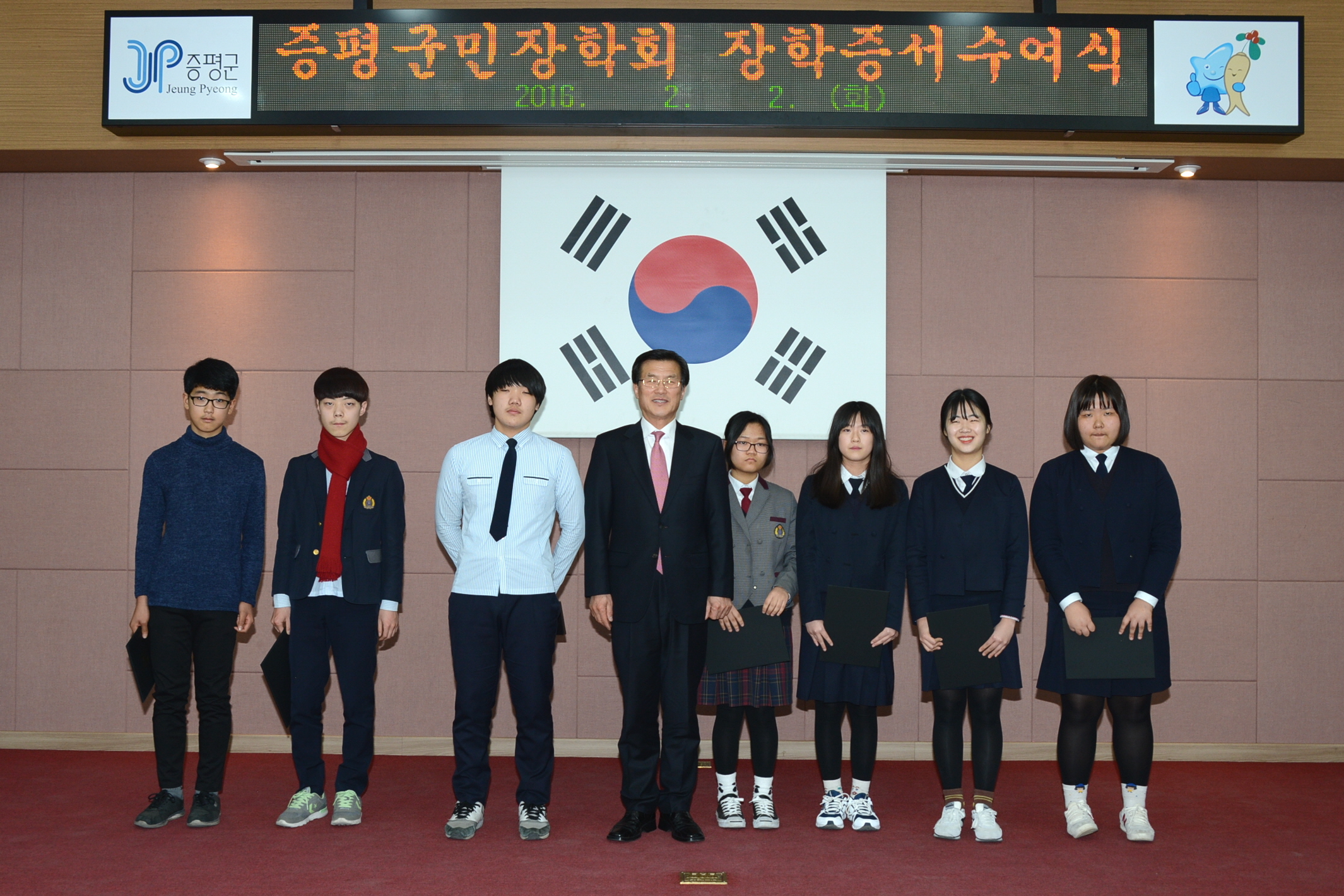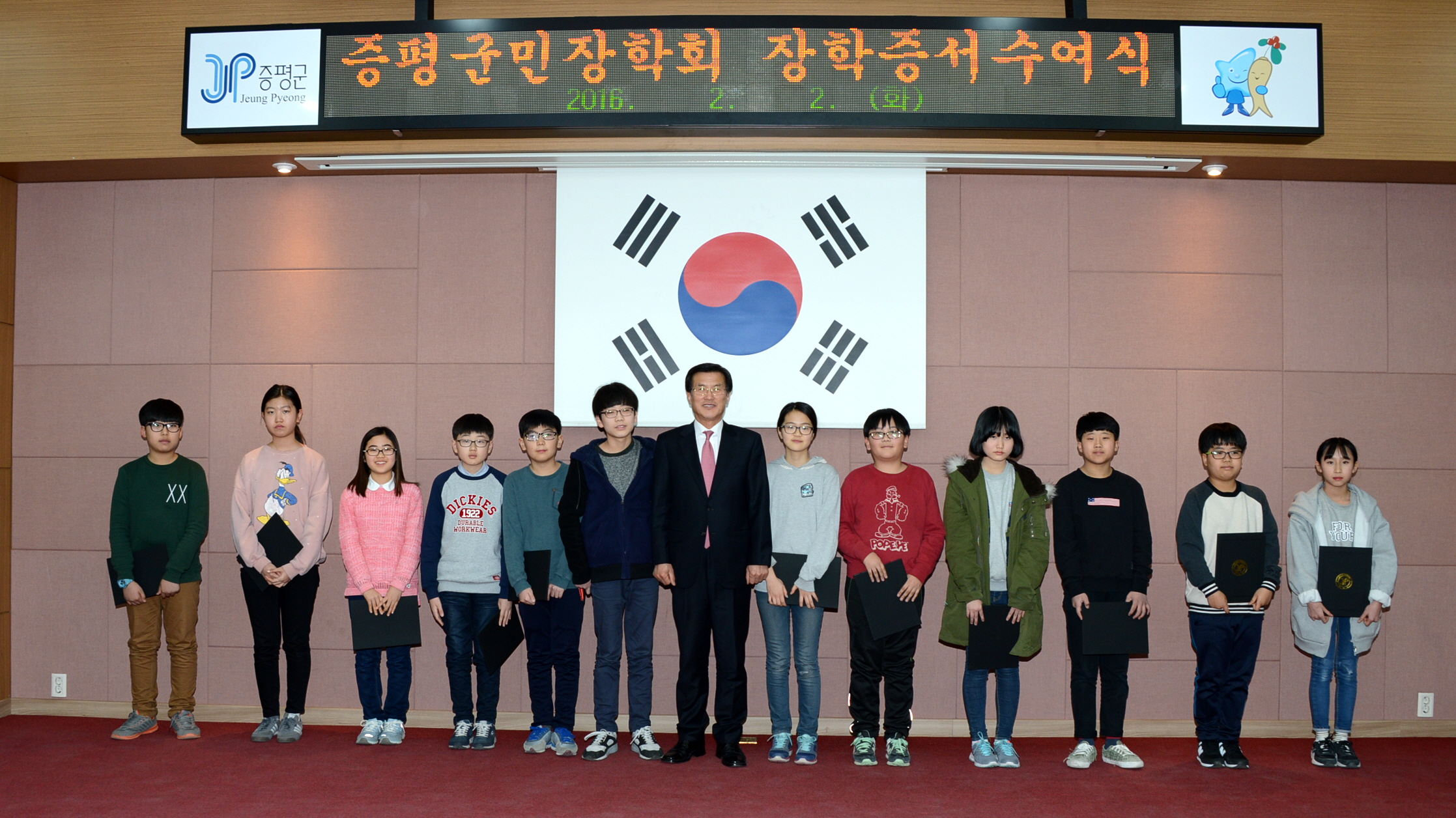 재단법인 증평군민장학회(이사장 홍성열 증평군수)는 2일과 3일 양일간에 걸쳐 증평군청 대회의실에서 2016년 장학생 장학증서 수여식을 가졌다.(보도자료실 참조)