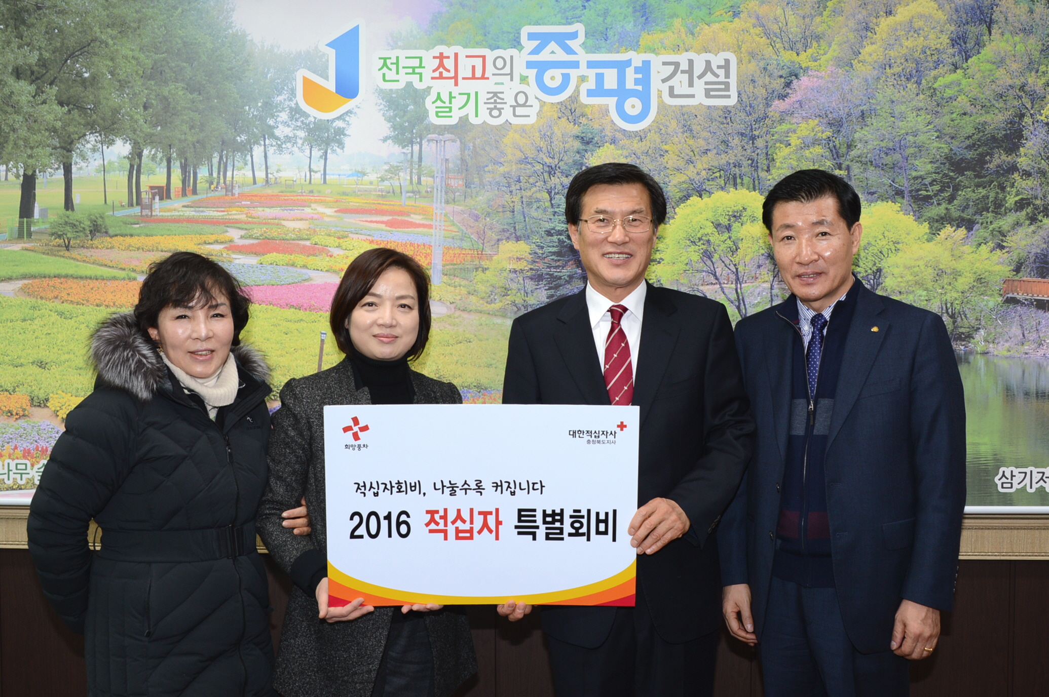 홍성열 증평군수는 4일 오후 1시 30분 군수 집무실에서 최현복 대한적십자사 충북지사 사무처장에게 적십자 특별회비를 전달했다.