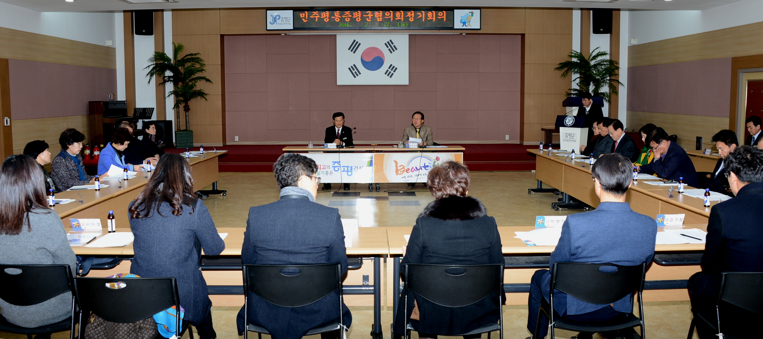 민주평통증평군협의회(회장 김장응) 정기총회가 22일 오전11시 증평군청 대회의실에서 열렸다.