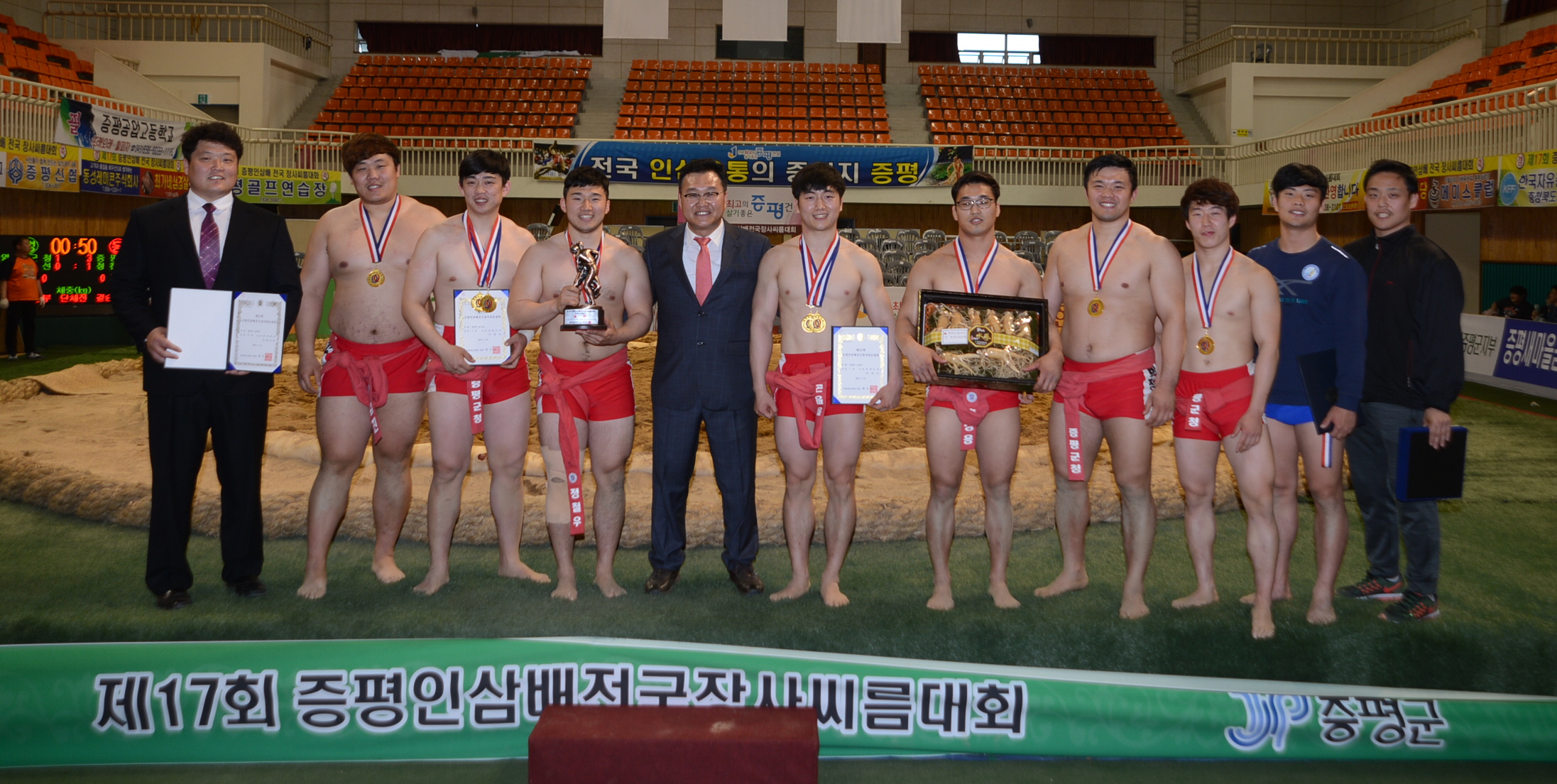 지난 17일부터 증평스포츠센터에서 시작된 제17회 증평인삼배 전국장사씨름대회가 오늘(23일) 막을 내린 가운데, 증평인삼씨름단이 개인전에서 소장급 하관수, 용사급 서종만 선수가 우승을 하였고, 단체전에서 2008년이후 8년만에 우승을 차지했다.