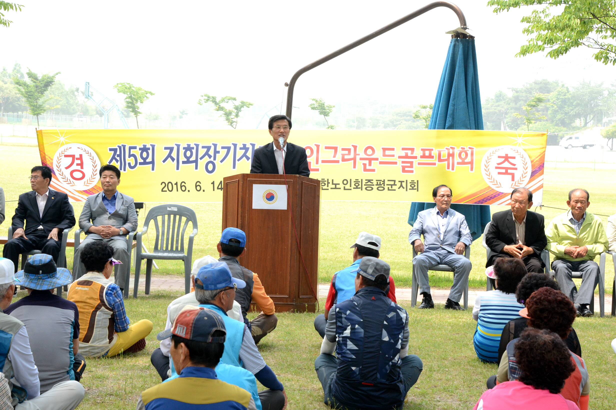 14일 증평군 보강천그라운드 골프장에서는 어르신들의 여가활동 및 친선도모를 위한‘제5회 (사)대한노인회증평군지회장기 그라운드골프 대회’가 홍성열 군수, 우종한 군의장 등이 참석한 가운데 열렸다. (보도자료시 참조)