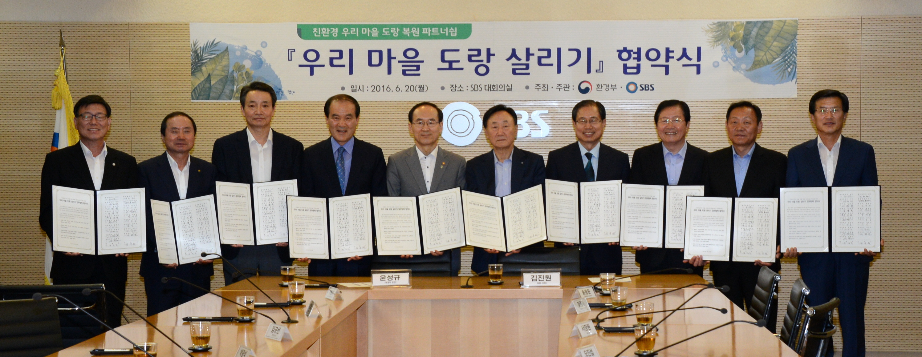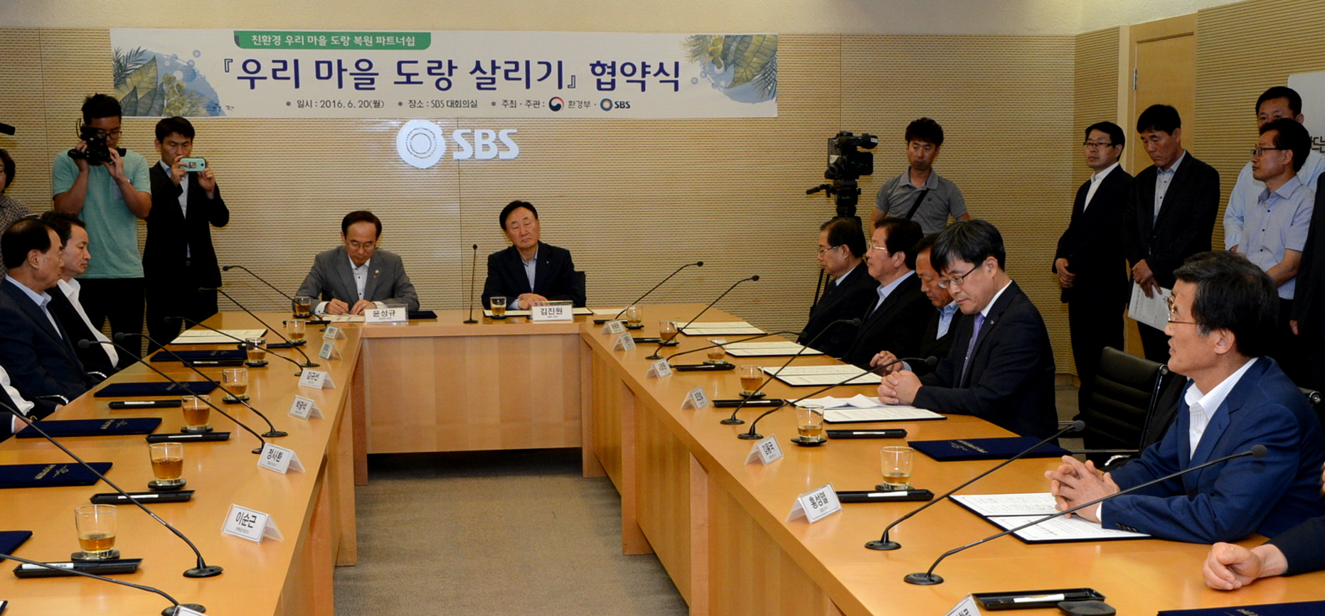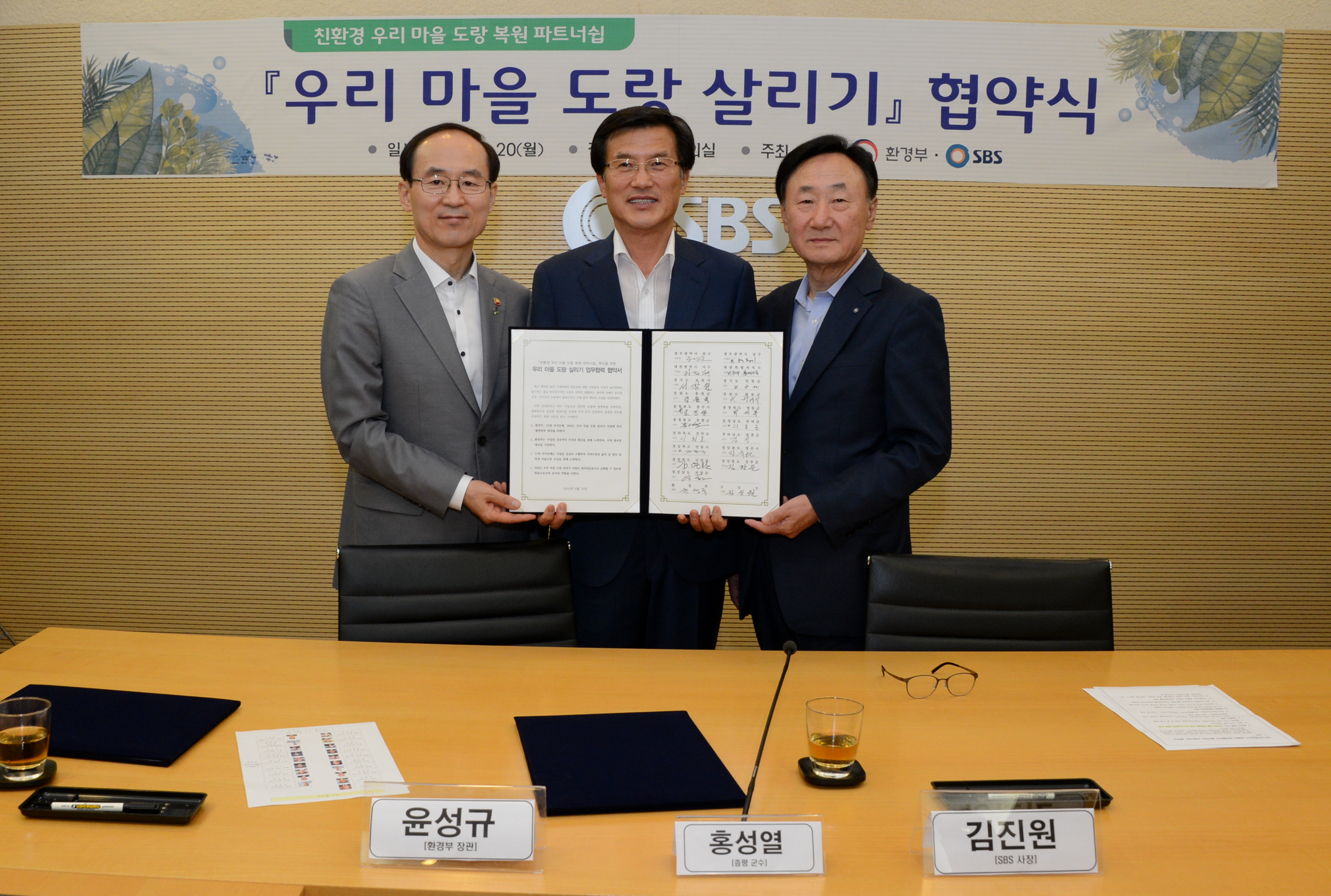 증평군이 5년 연속 환경부와 SBS가 실시하는 ‘우리마을 도랑살리기사업“에 선정되어 20일 SBS 서울 목동사옥에서 성공적인 추진을 위한 협약을 체결했다.(보도자료실 참조)