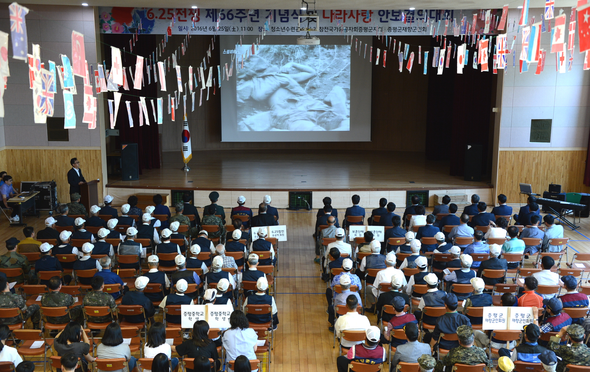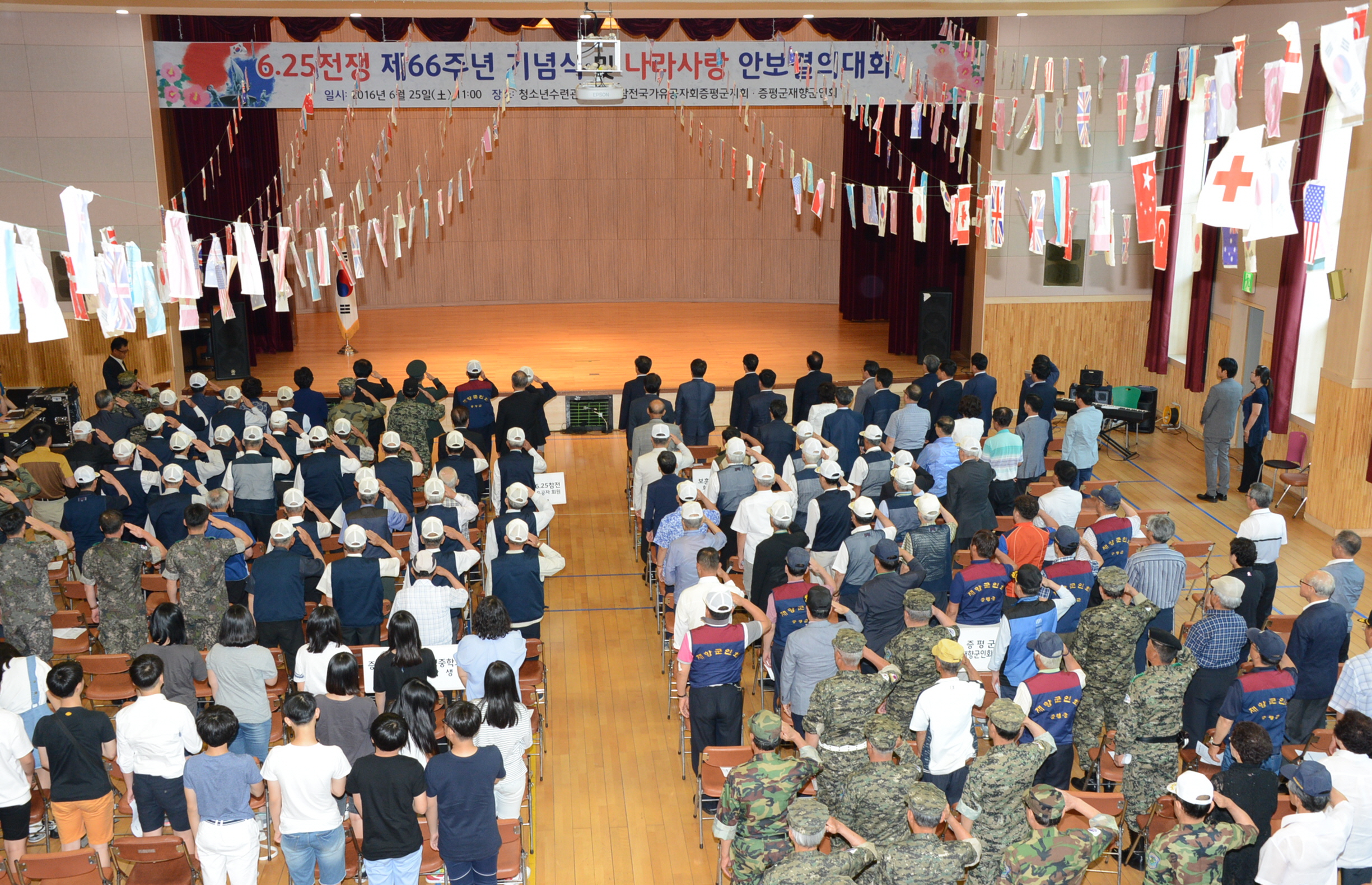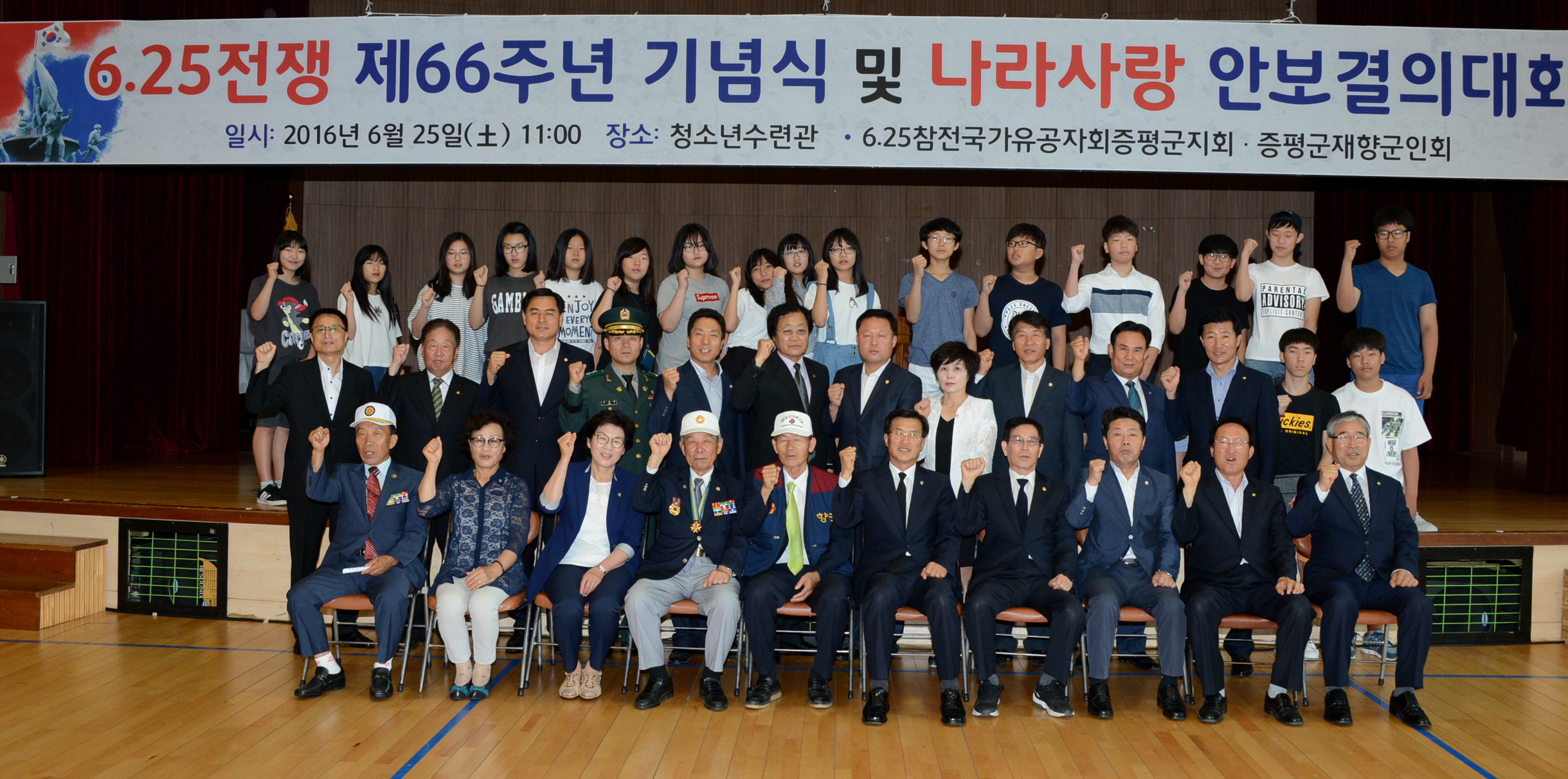 증평군은 25일 증평군청소년수련관에서 홍성열 군수, 우종한 군의장과 군의원, 육재동 재향군인회장, 정은영 6.25참전유공자회장을 비롯한 보훈단체 회원 및 주민 등 300여명이 참석한 가운데 6.25전쟁 66주년 기념행사를 개최했다.(보도자료실 참조)