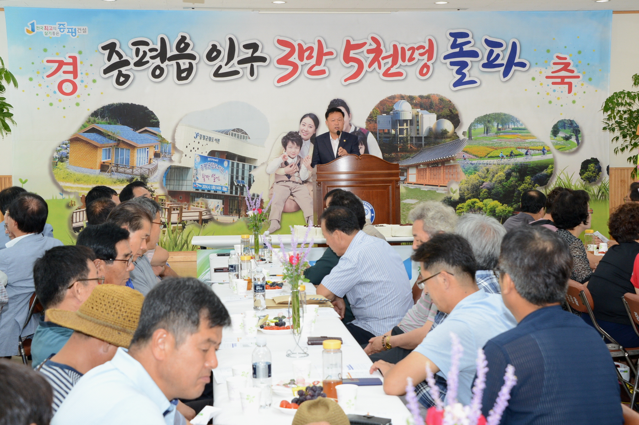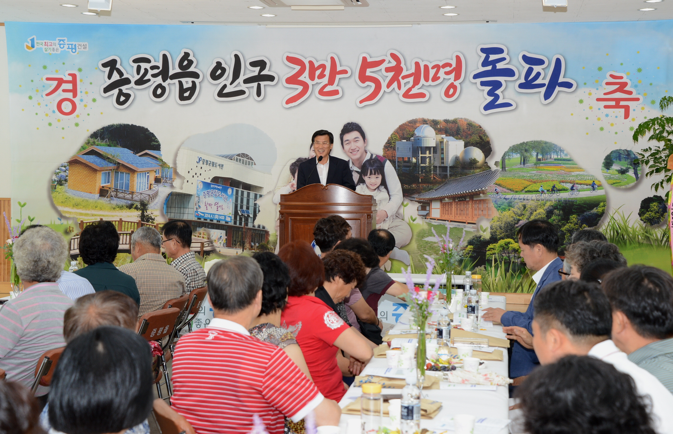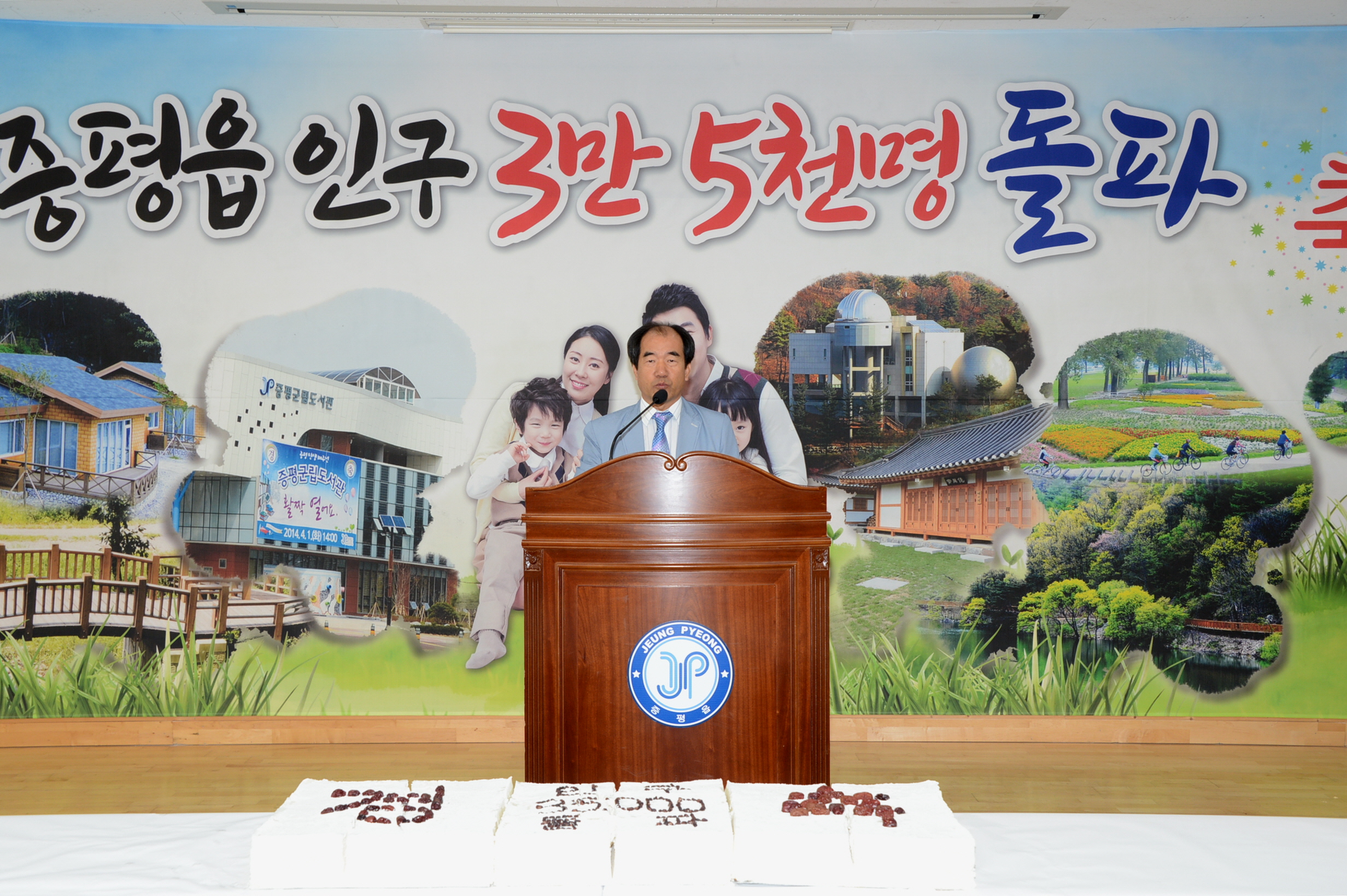 증평읍(읍장. 이명진)은 11일 읍사무소 2층 회의실에서 홍성열군수, 연종석 군의장, 임재봉 증평읍이장협의회장을 비롯해 지역주민 등 100여명이 참석한 가운데 증평읍 인구 3만 5천명 돌파를 축하하는 기념행사를 가졌다.(보도자료실 참조)