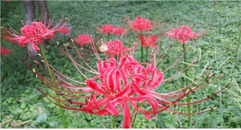 좌구산휴양림에 석산이 만개해 휴양림을 찾는 방문객에게 아름다움을 선사하고 있다.