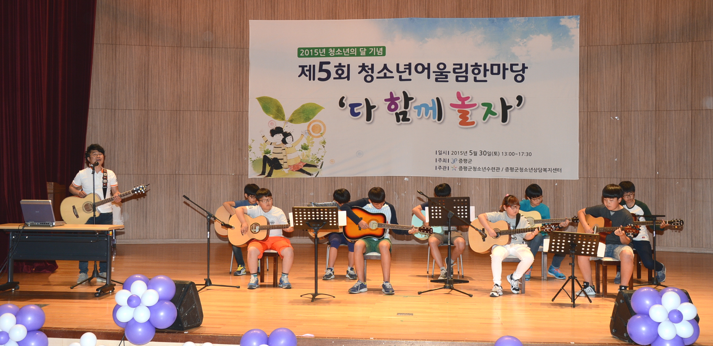 증평군청소년수련관·청소년상담복지센터(수련관장겸 센터장김병노)는 30일 오후 1시 30분 청소년과 가족 500여명이 참석한 가운데 청소년들의 끼와 열정을 발산할 수 있는 제5회 청소년어울림한마당을 증평군청소년수련관 다목적강당에서 열렸다.[보도자료실 참조]