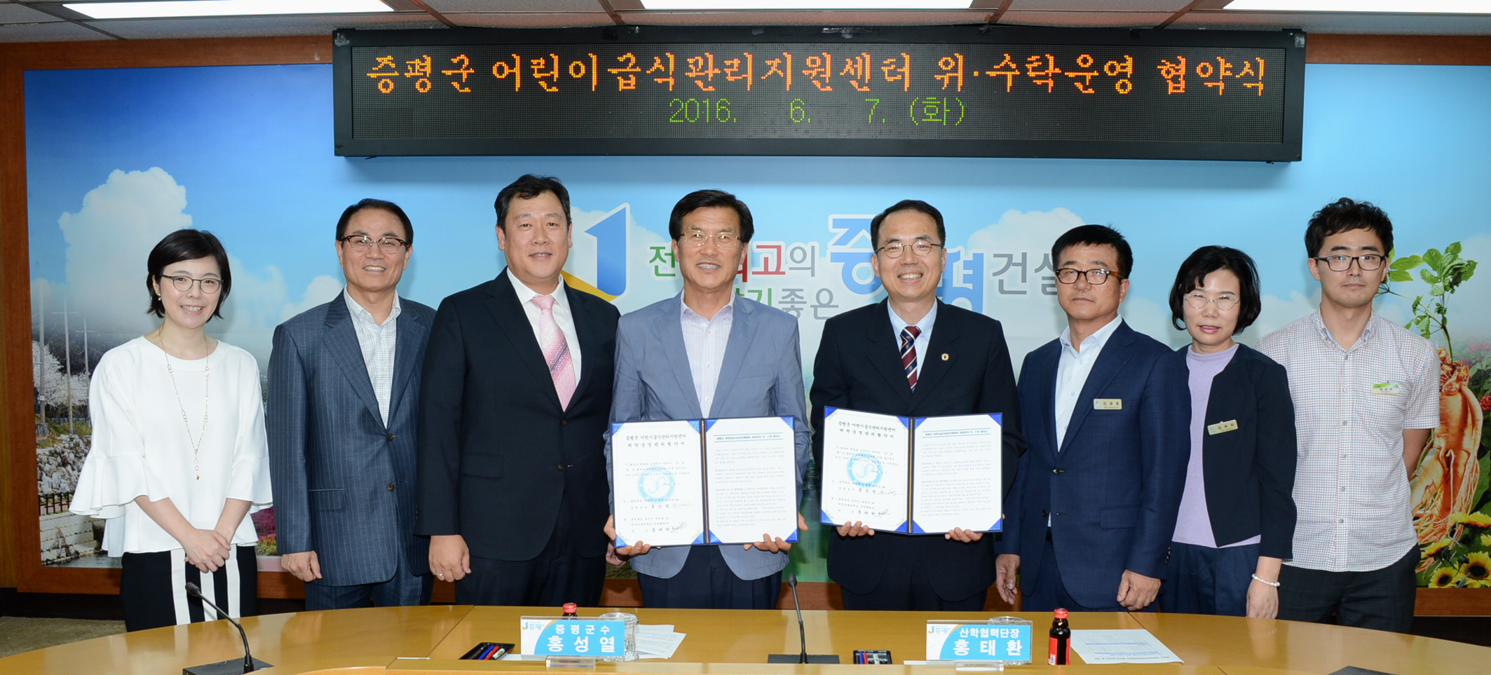 증평군은 7일 오후 5시 군청 소회의실에서 증평군 어린이급식관리지원센터로 선정된 한국교통대학교 산학협력단과 위․수탁 협약을 체결했다.(보도자료실 참조)
