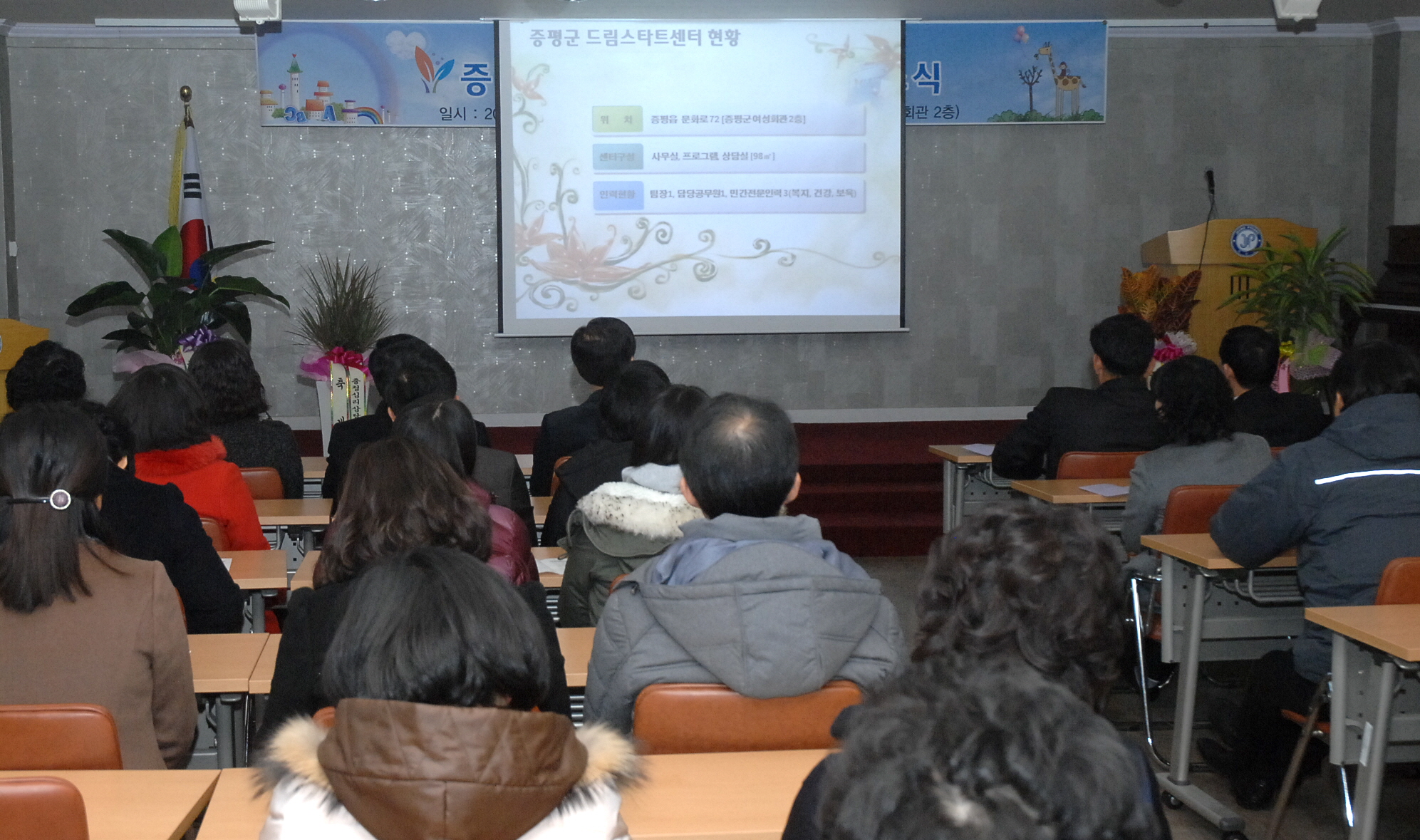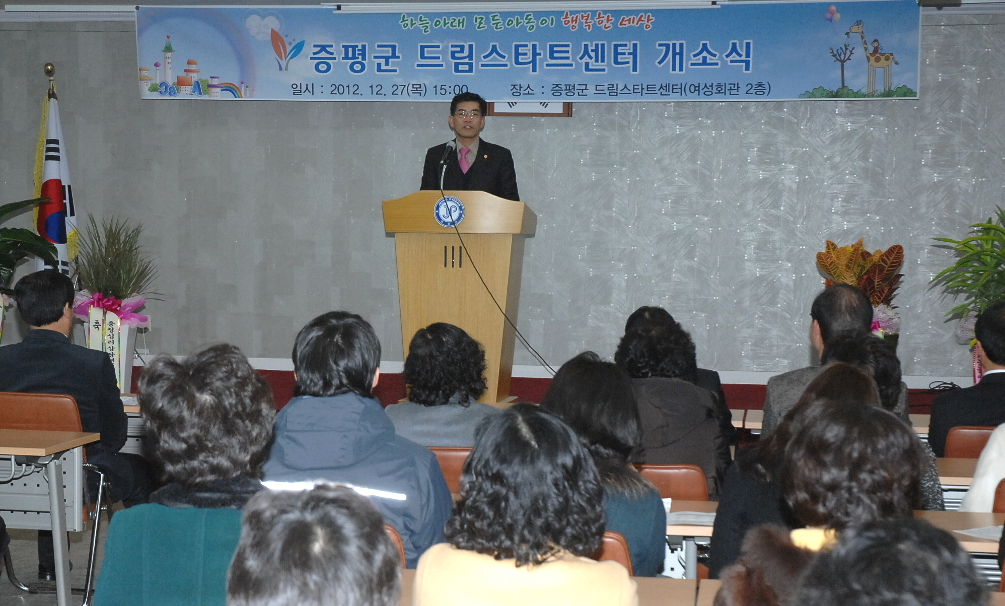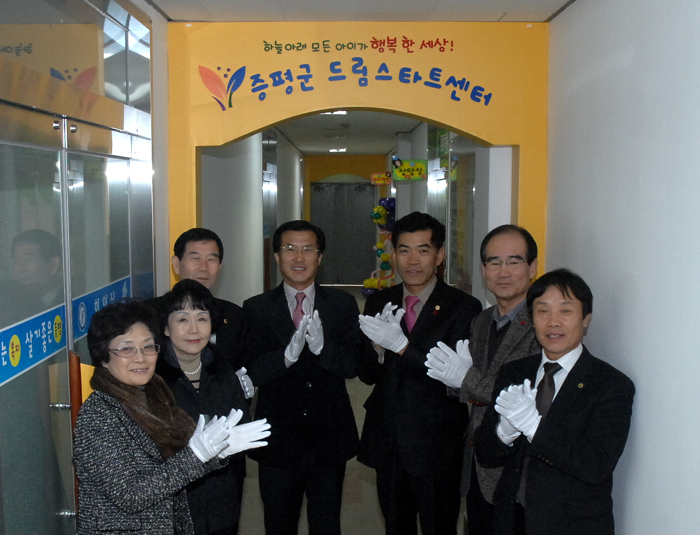 증평군은 27일 오후3시 증평군여성회관에서 홍성열 증평군수, 박석규 군의장을 비롯한 군의원 및 각급 관련 기관 단체 등 50여명이 참석한 가운데 드림스타트센터 개소식을 개최했다. [보도자료실 참조]