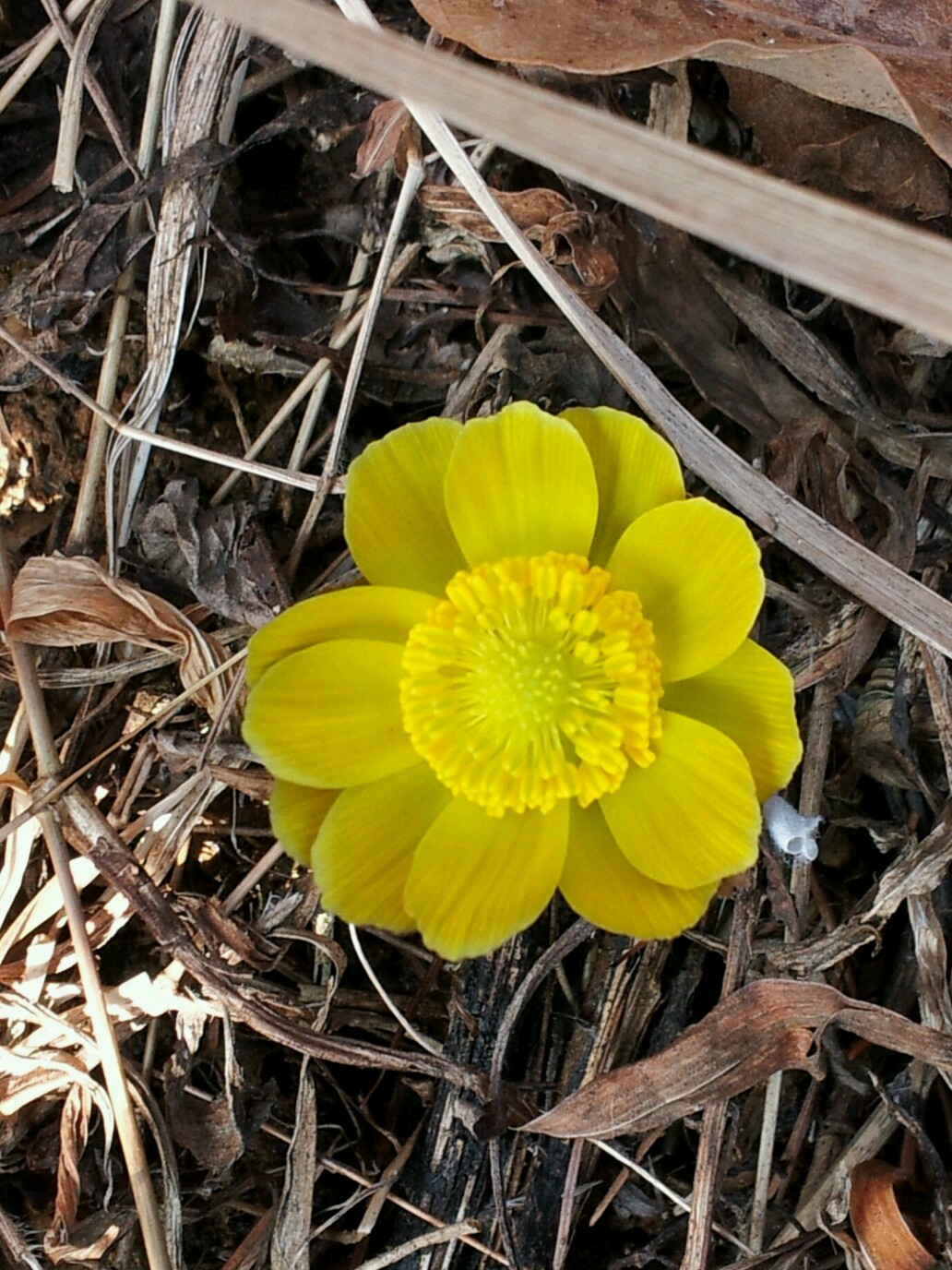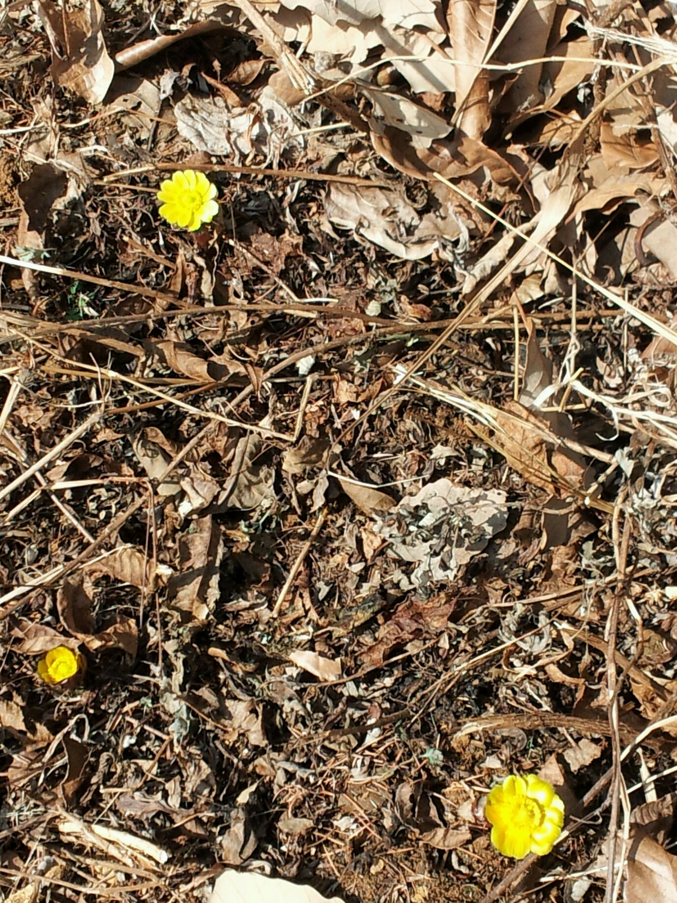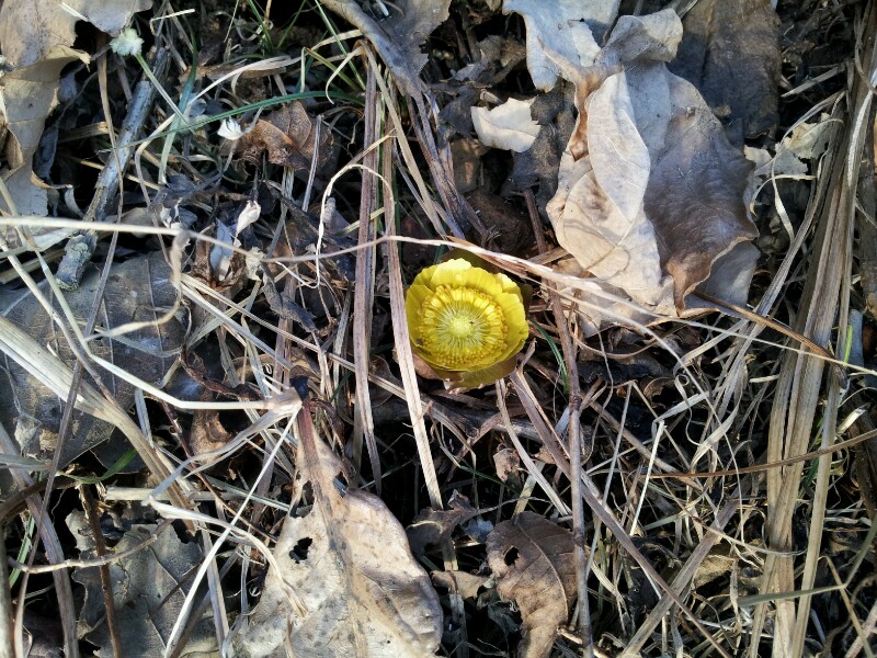 충북 증평군 증평읍 율리에 있는 좌구산 휴양림 삼림욕장 내 잔설 속에서 봄의 전령사인 복수초(福壽草)가 꽃망울을 활짝 터뜨렸다. [보도자료실 참조]