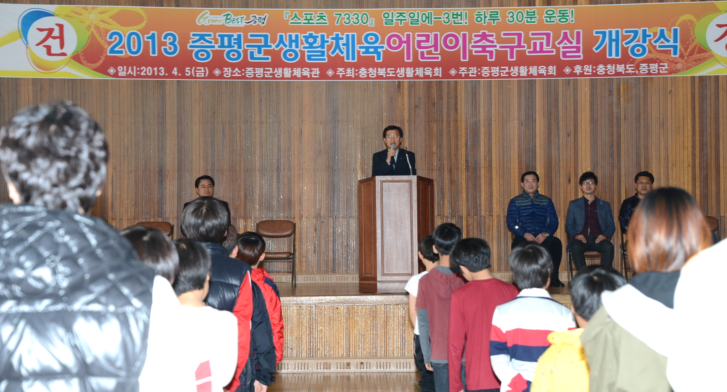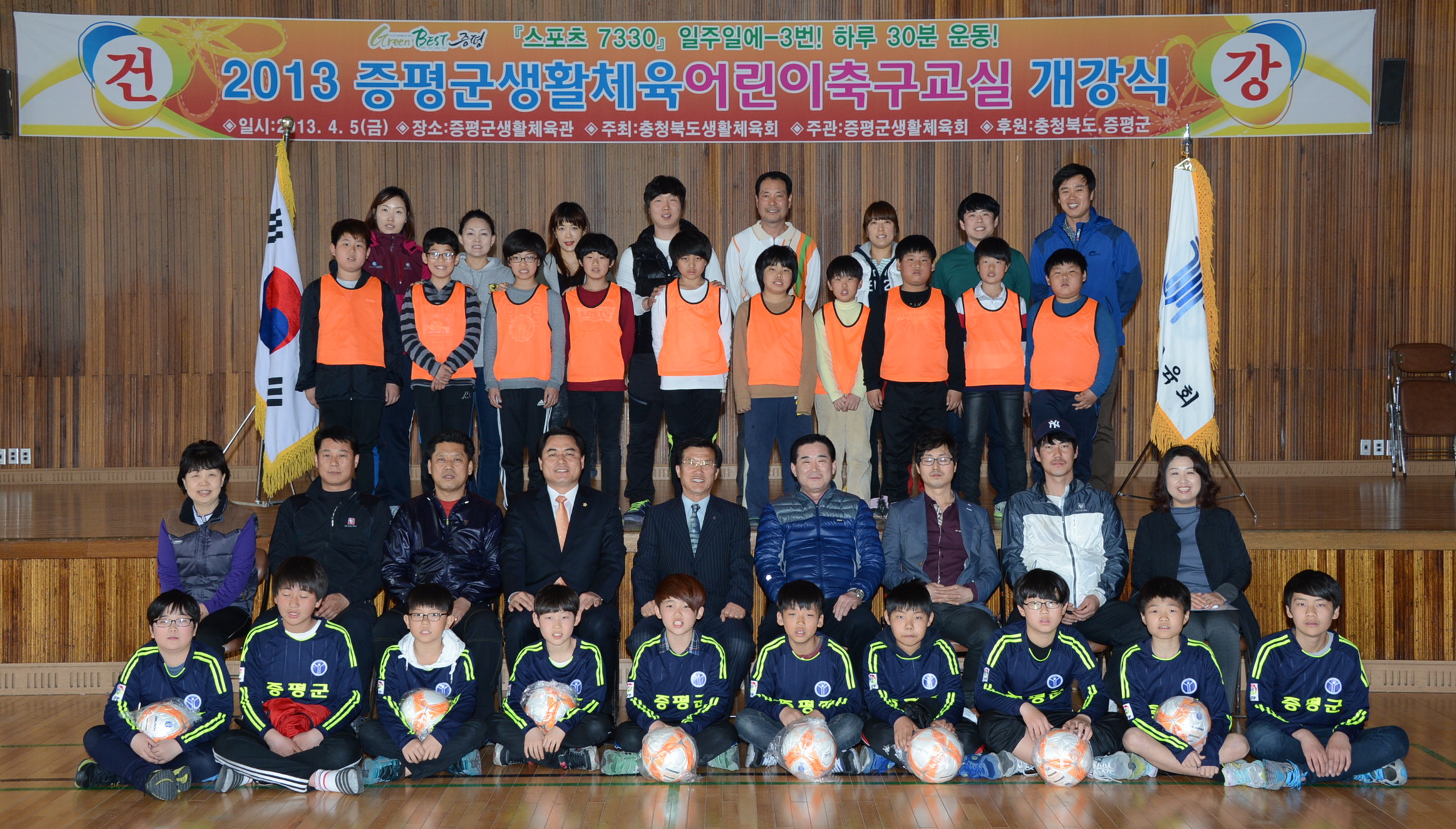 증평군체육회(회장 홍성열)는 5일 오후 축구 꿈나무 육성 및 어린이 기초체력 향상을 위해 5일 오후3시 증평생활체육관에서 “2013 증평군 어린이축구교실”을 개강하고 본격 운영한다. [보도자료실 참조]