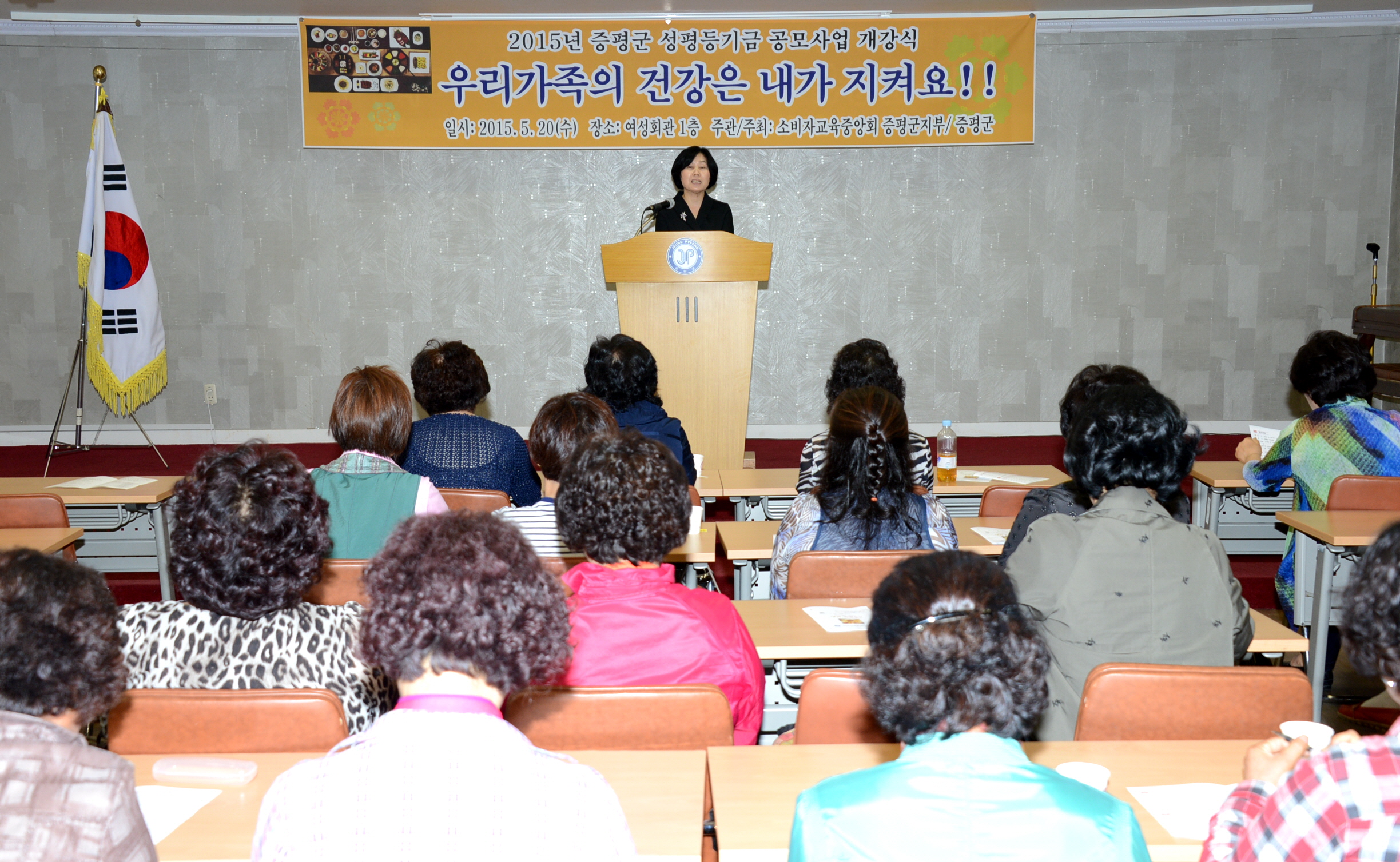 증평군은 20일, 여성회관 교육실에서 2015년도 성평등 기금사업의 일환으로 기획․추진되는 건강요리교실 프로그램 개강식을 개최했다.[보도자료실 참조]