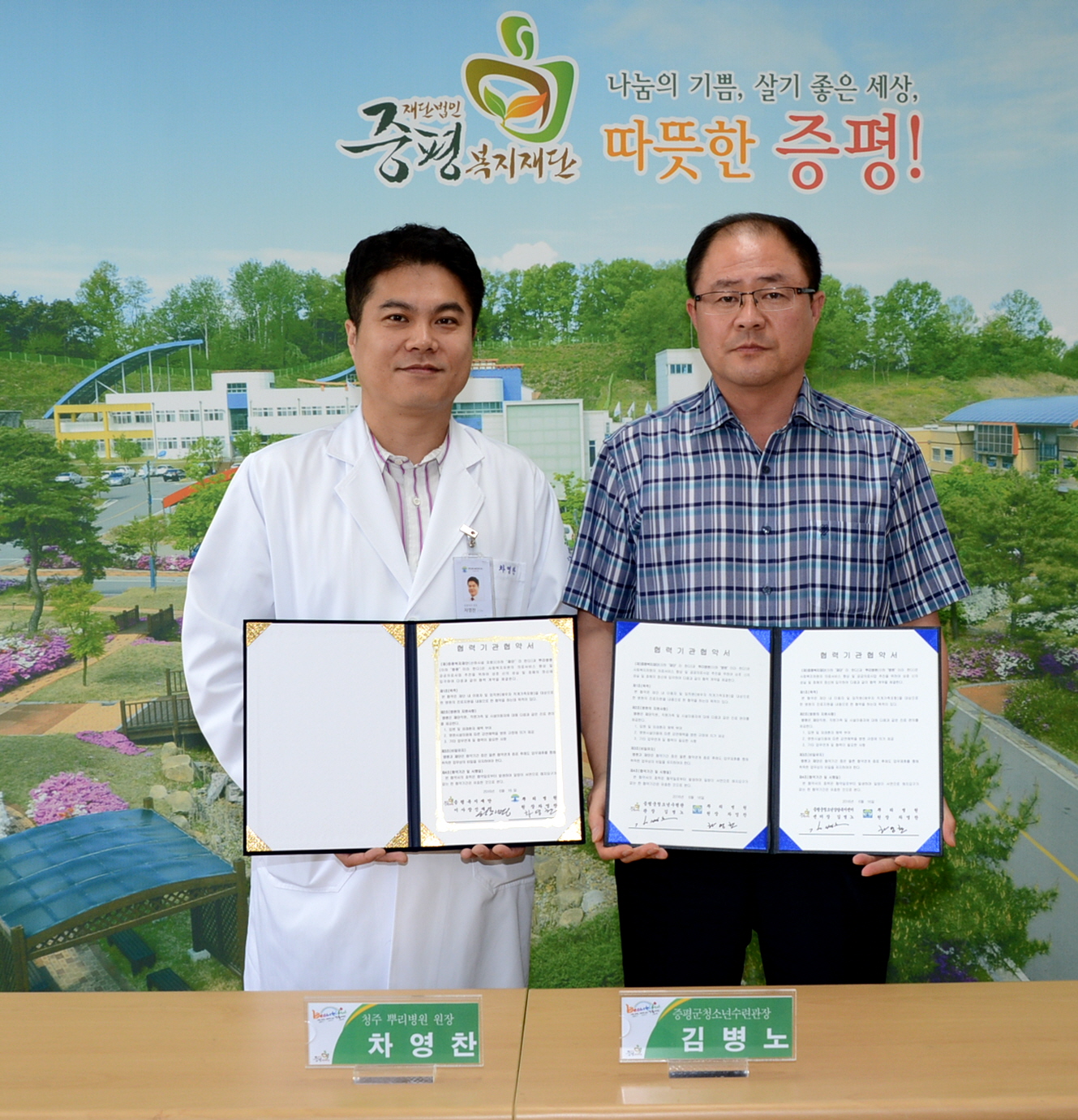증평복지재단(이사장 신재영)과 뿌리병원(원장 차영찬)은 16일 오전 10시 30분 복지재단회의실에서 신재영이사장, 차영찬 원장 등 관계자 10여명이 참석한 가운데 의료서비스 향상과 공공의료사업 추진을 위한 업무협약을 체결했다.(보도자료실 참조)