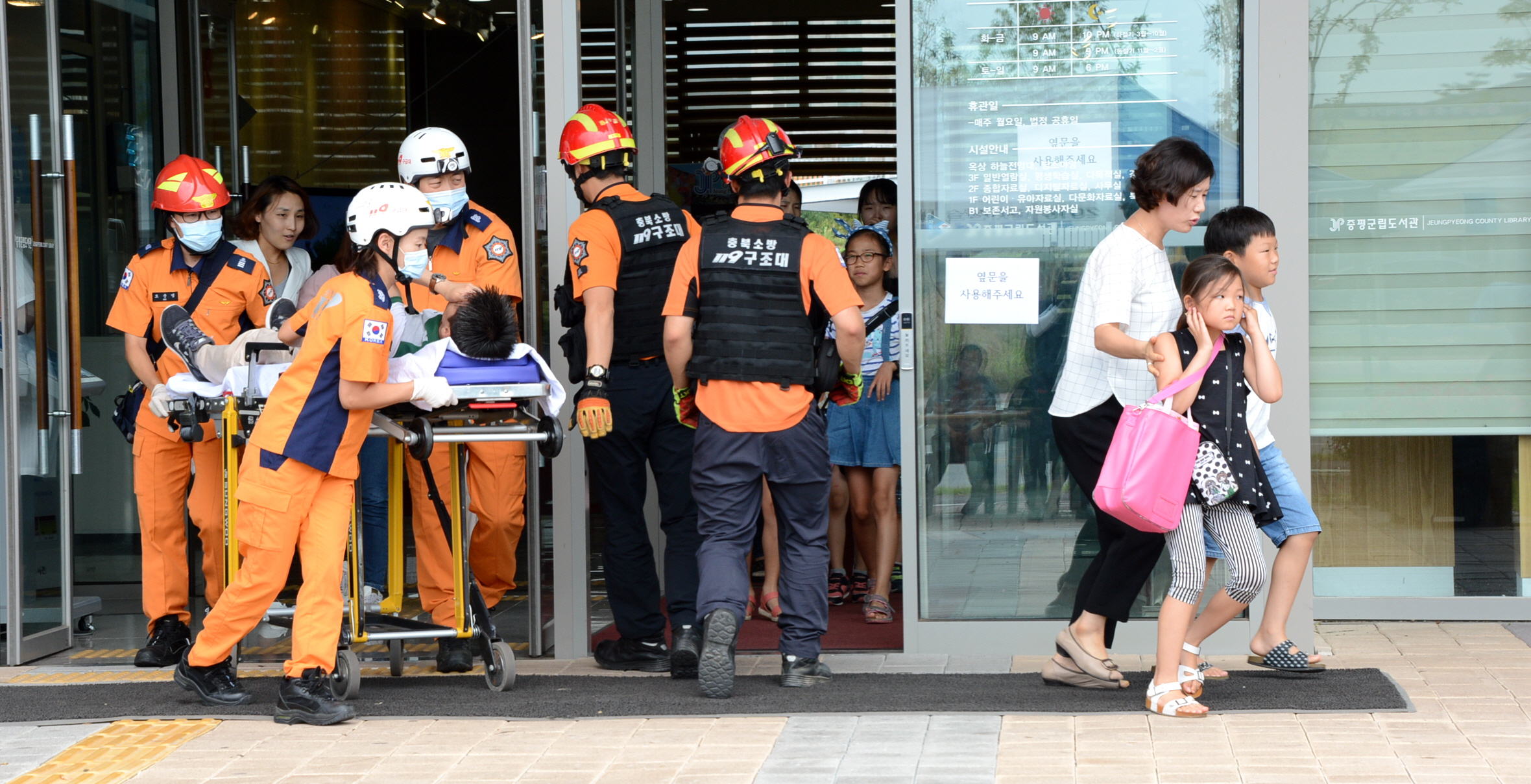 증평군은 23일 오후 2시 증평군립도서관에서 다중이용시설 테러범 침투에 따른 진압 및 수습 훈련을 실시했다.(보도자료실 참조)