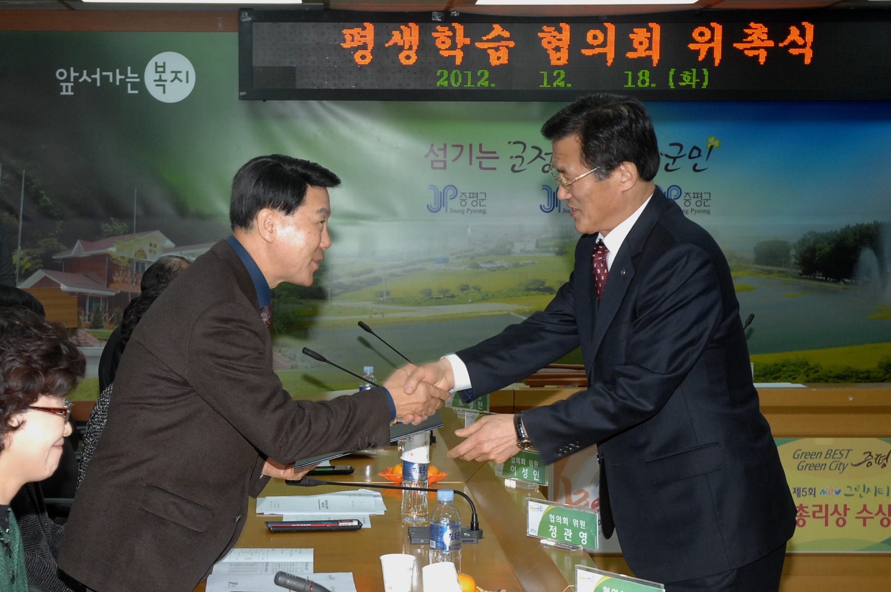 증평군은 18일 군청 소회의실에서 평생학습협의회 및 실무협의회 출범식을 개최하고 평생학습협의회 위원 9명, 실무협의회 위원 12명 등 총 21명의 위원을 위촉했다. [보도자료실 참조]