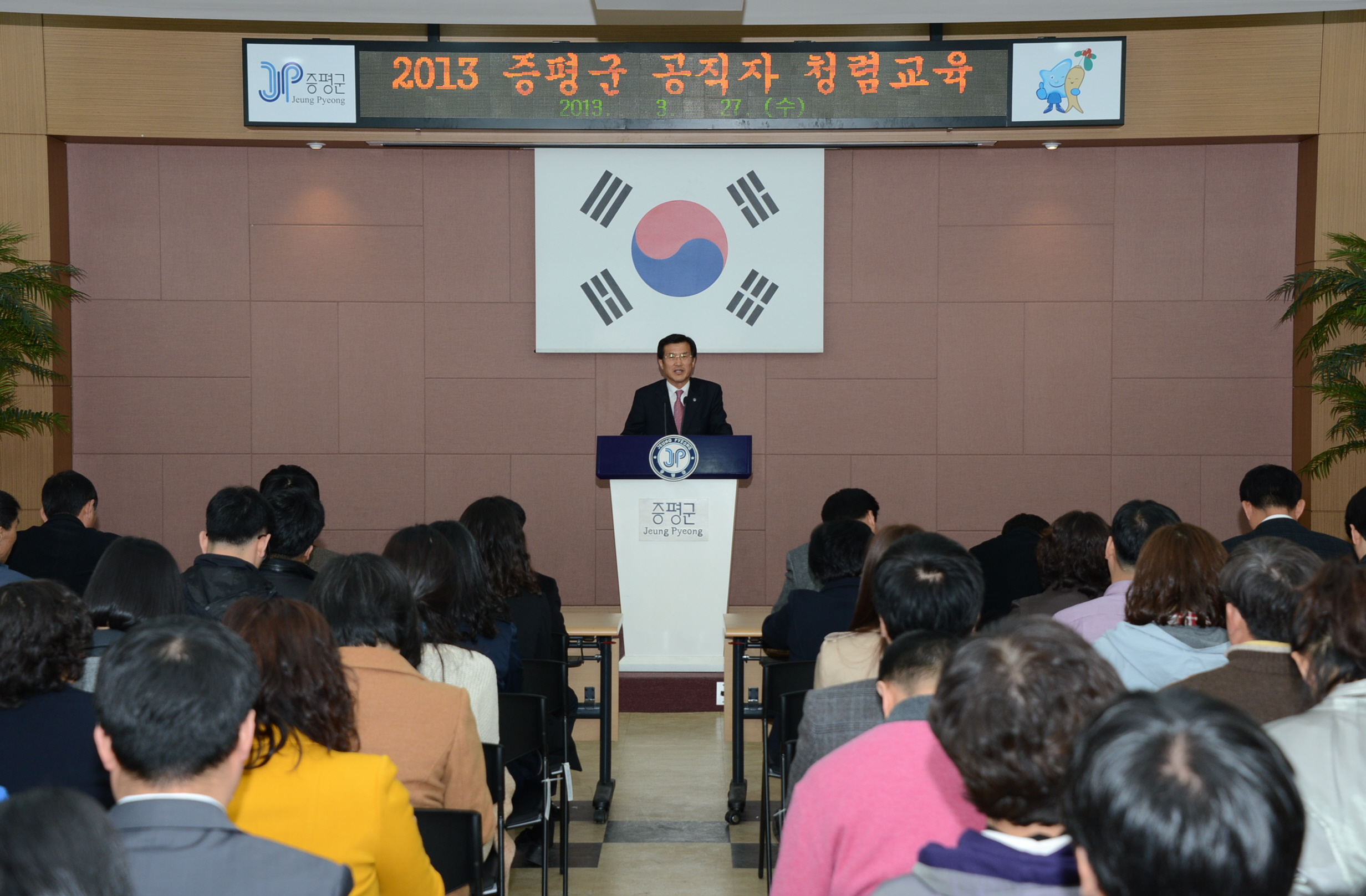 최근 새정부 출범에 따른 공직기강 확립 노력이 이어지고 있는 가운데 증평군은 27일 오후 3시 군청 2층 대회의실에서 군 산하 공무원 150여명이 참석한 가운데 청렴교육을 실시했다.[보도자료실 참조]