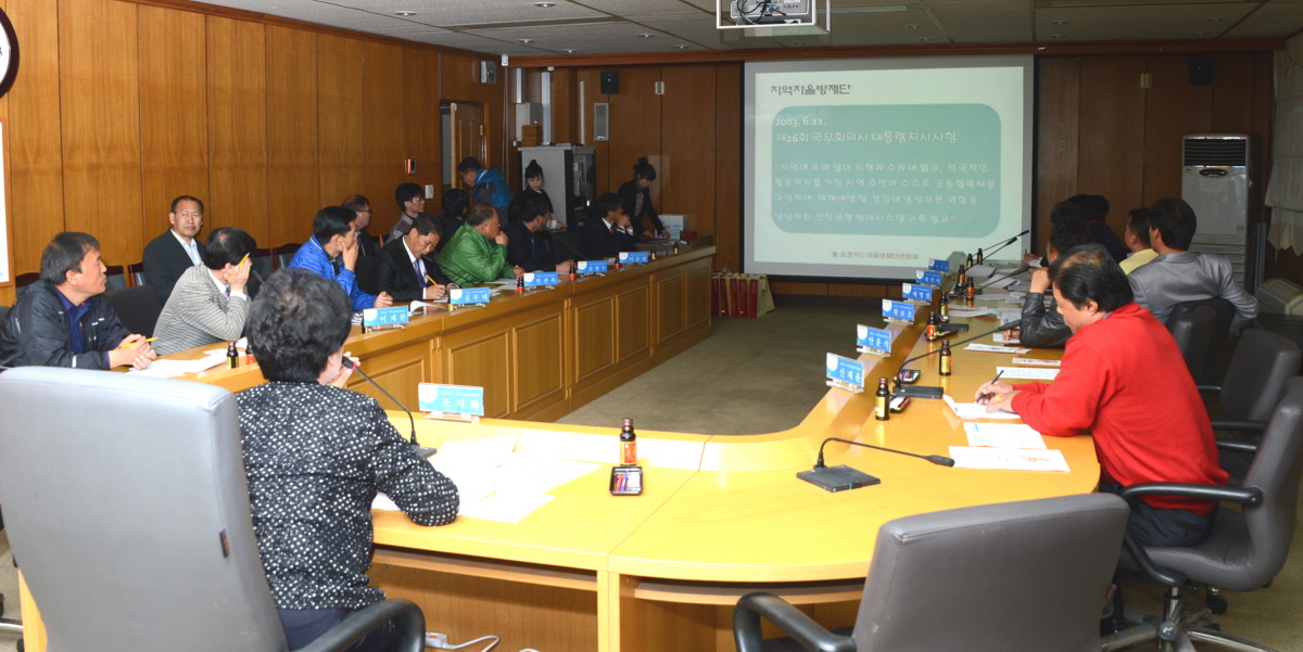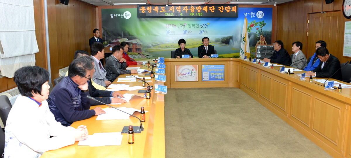 충청북도 지역자율방재단(단장 조지화)은 29일 오전11시 군청 소회의실에서 도내자율방재단장 및 임원을 비롯해 관계공무원 등 20여명이 참석한 가운데 간담회를 개최했다. [보도자료실 참조]