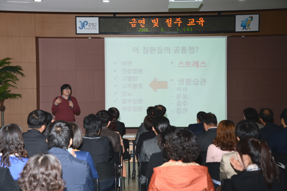 증평군보건소는 1일 군청 대회의실에서 100여명의 공직자를 대상으로 건강한 직장 만들기 일환으로 흡연예방에 대한 강연을 실시했다. [보도자료실 참조]