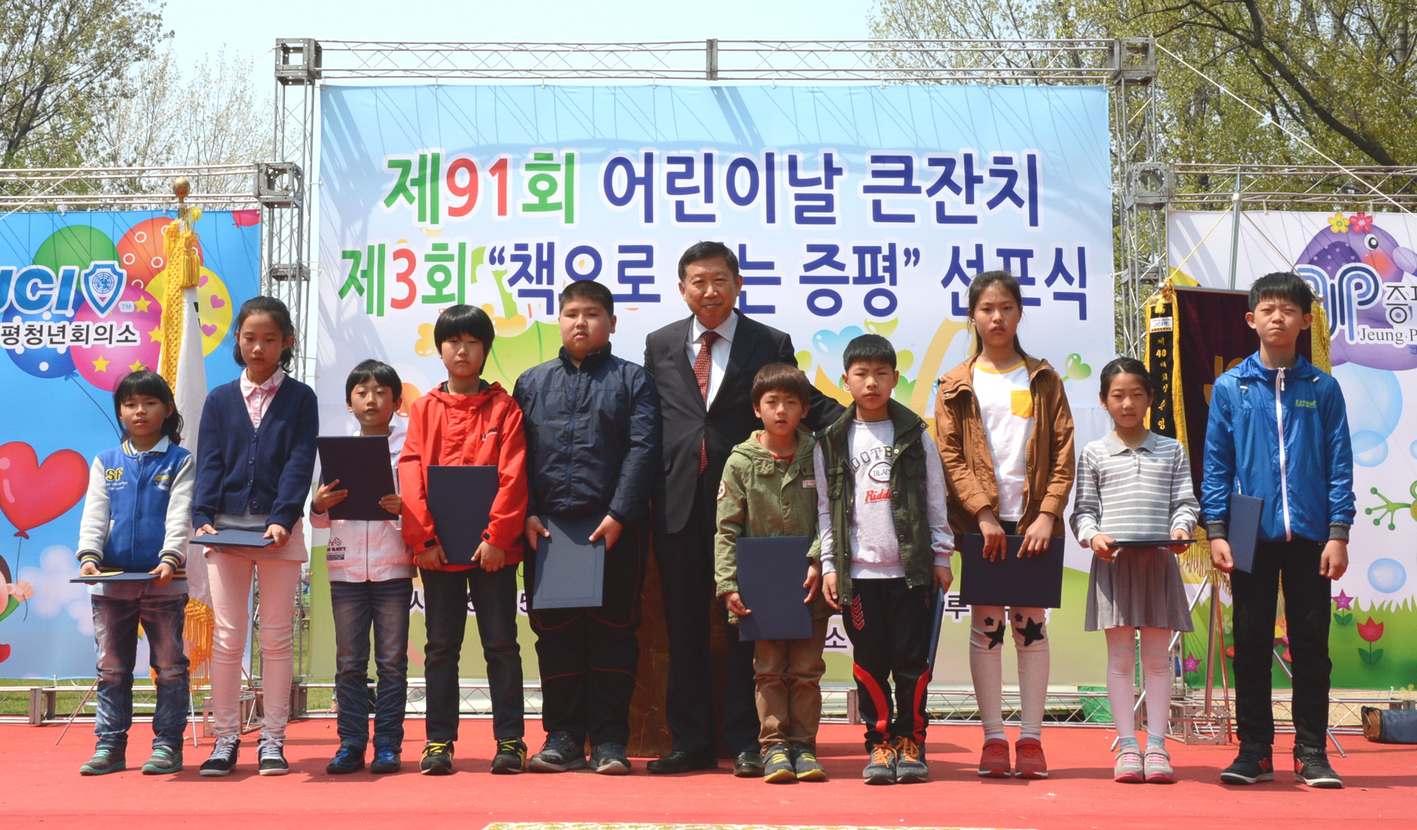증평군에서는 5일 보강천 미루나무숲 일원에서 어린이와 가족, 주민 등 2천여 명이 참가한 가운데 ‘제91회 어린이날 기념 어린이날 큰잔치’가 개최됐다. [보도자료실 참조]