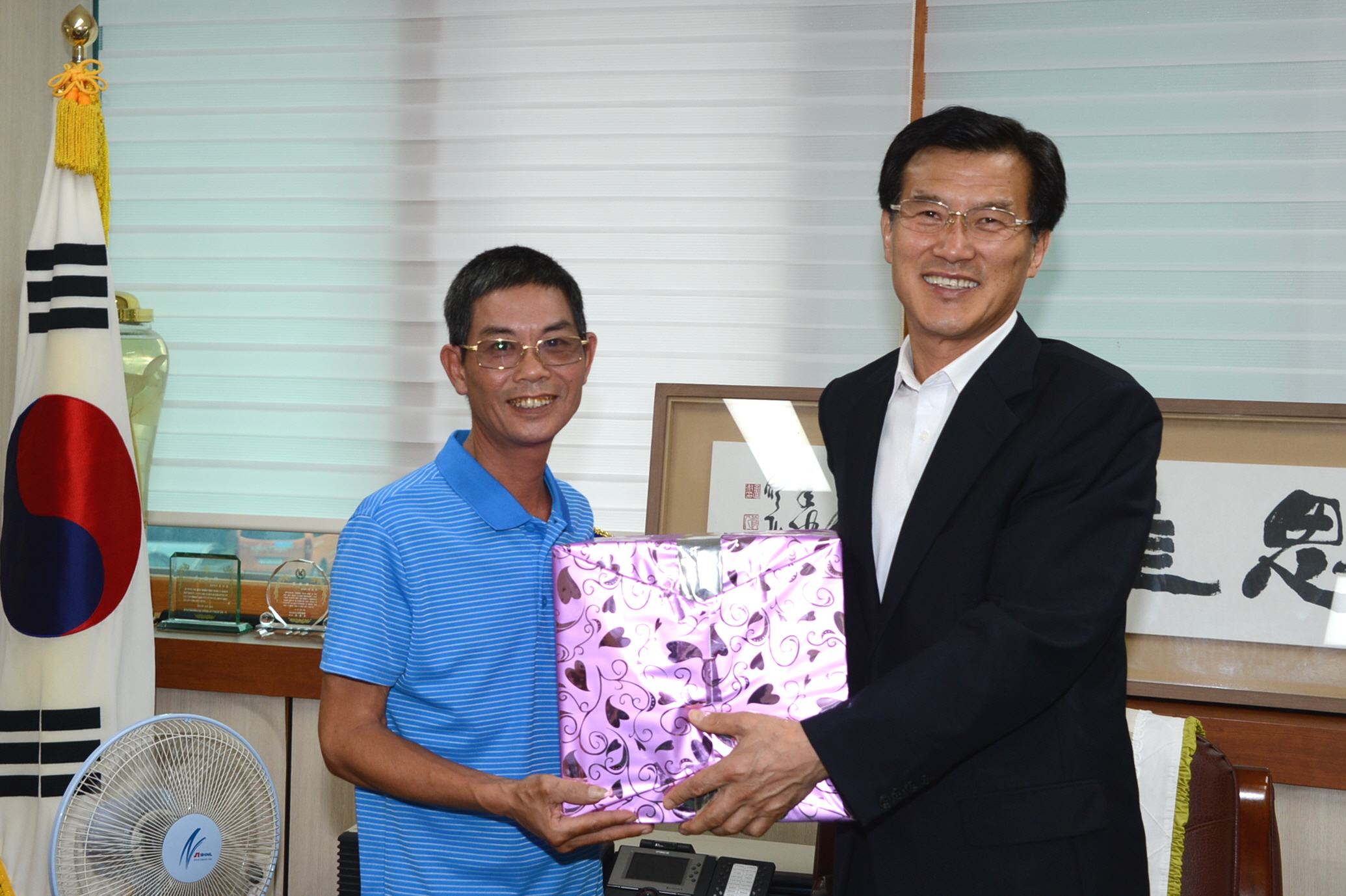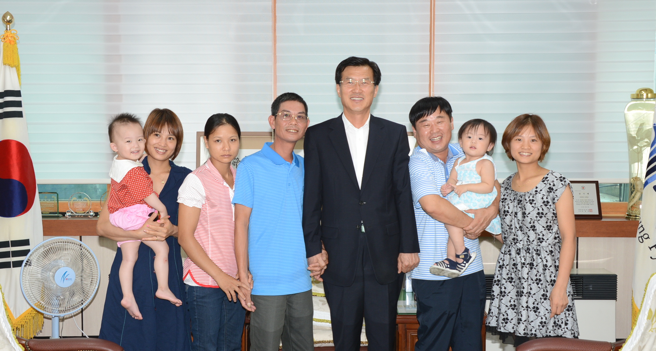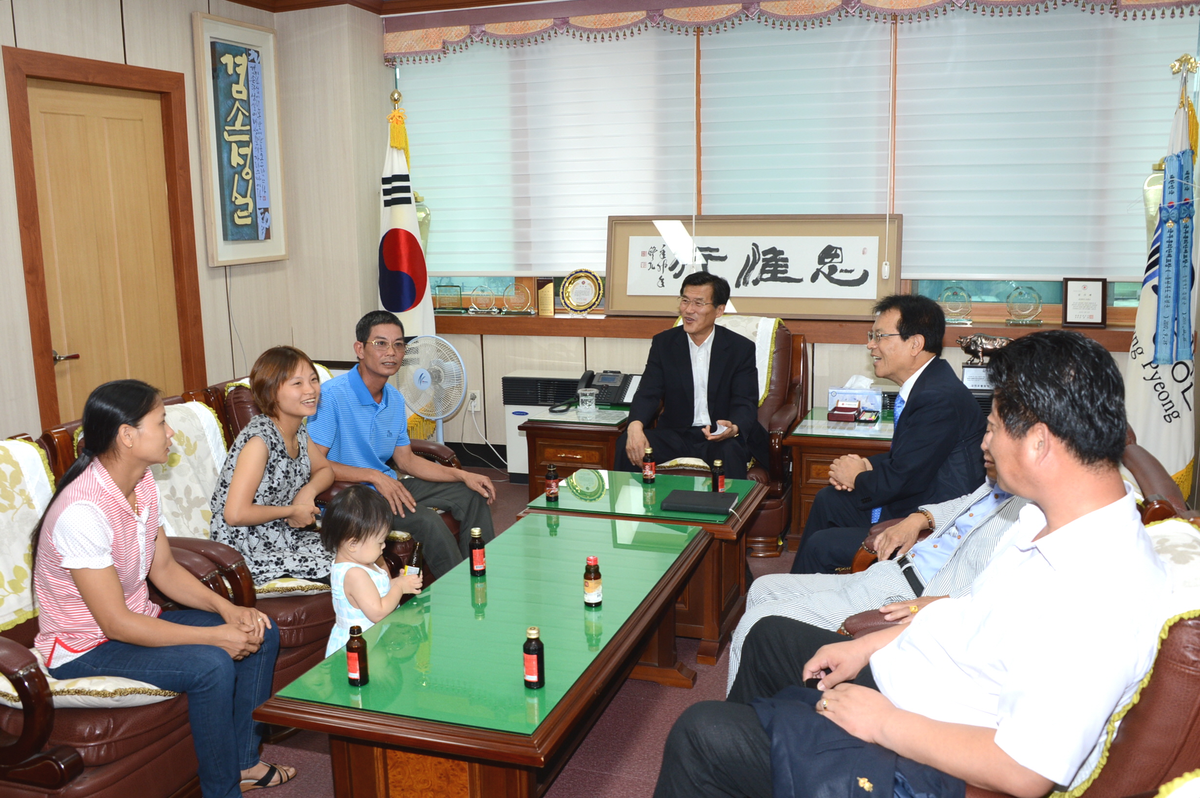 증평군 증평읍 장동리에 거주하고 있는 응웬티안(21세)씨의 가족과 바르게살기운동 증평군협의회장 등 임원 10여명은 29일 오전 10시 군을 방문해 홍성열 증평군수와 환담을 나눴다. [보도자료실 참조]