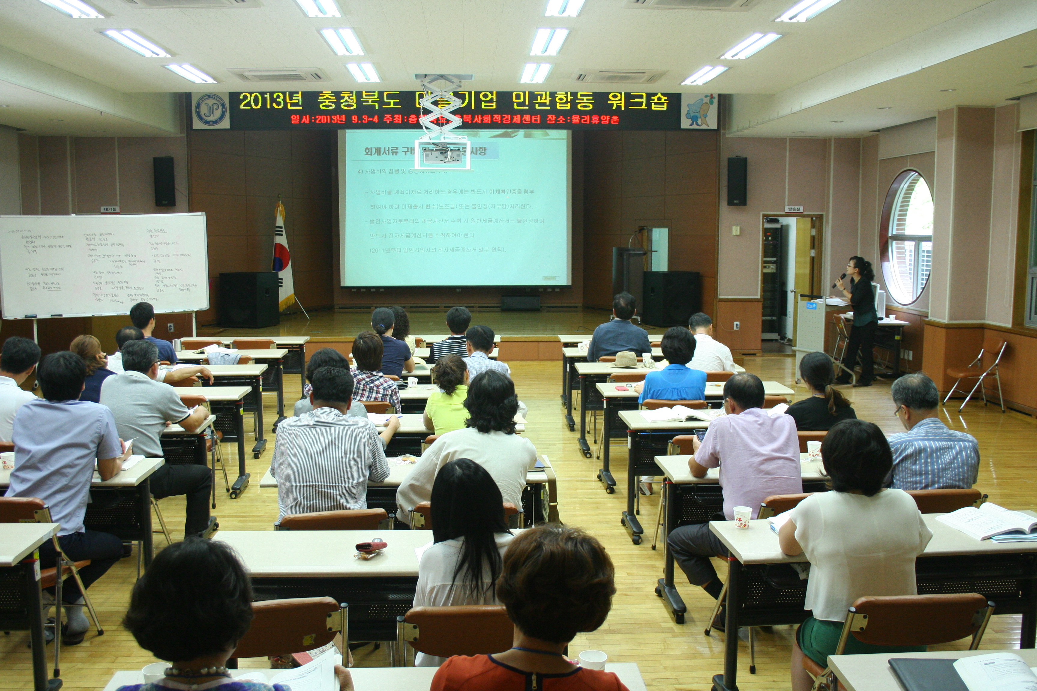 도내 마을기업 경쟁력 강화를 위한 2013 충북 마을기업 민관 합동워크숍이 충북사회적경제센터 주관으로 3일부터 4일까지 2일간 증평읍 율리휴양촌에서 개최됐다. [증평보도자료실 참조]