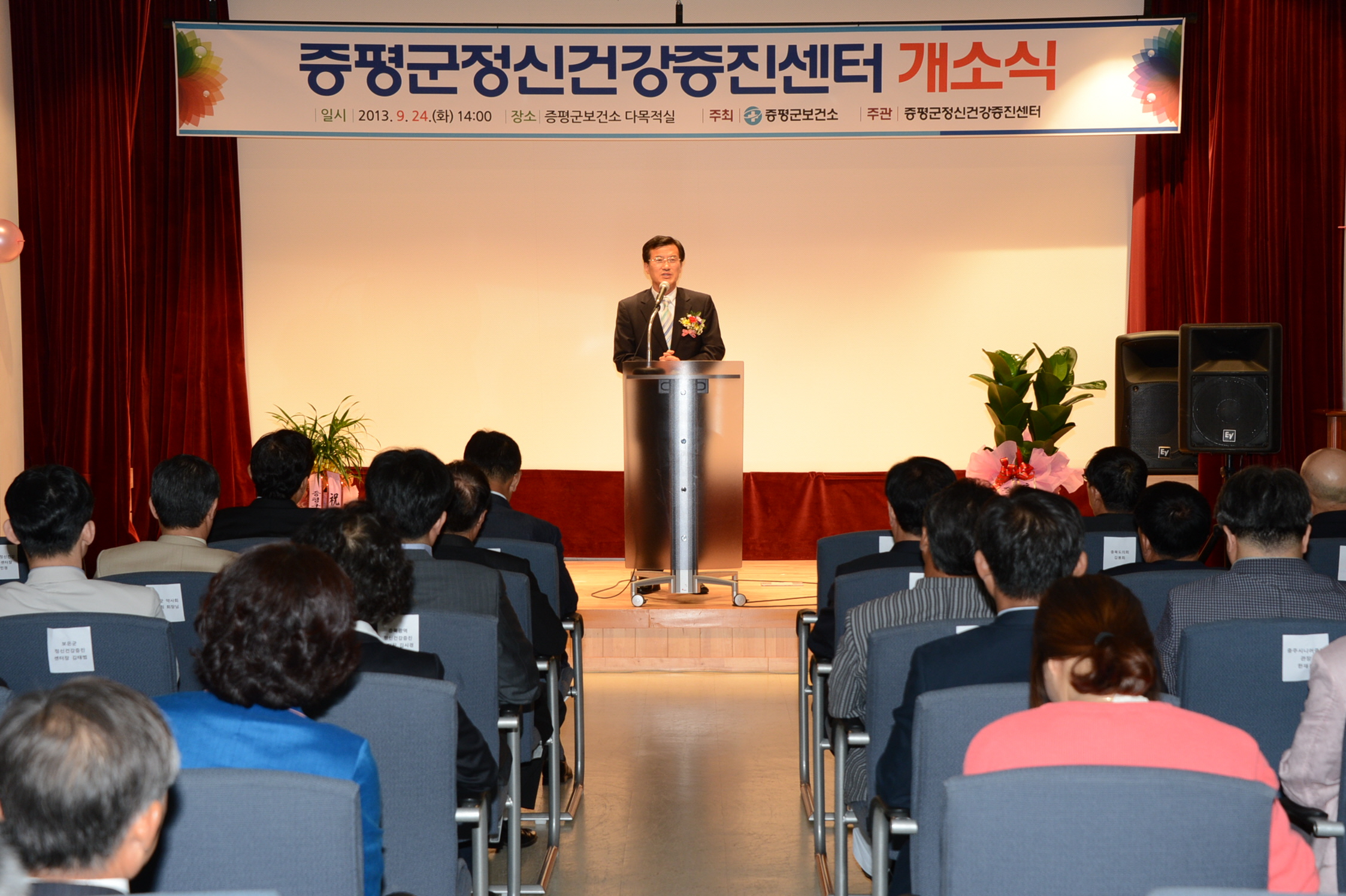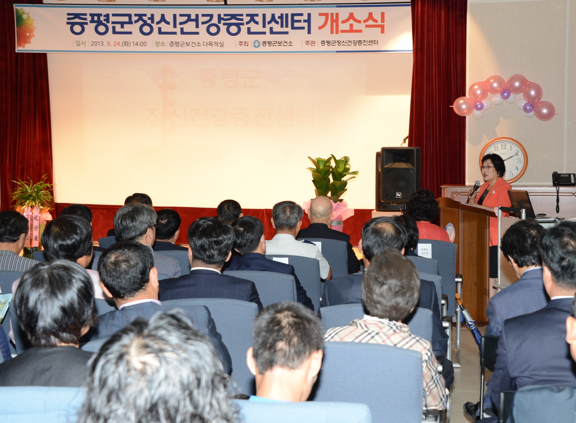 증평군은 24일 오후 2시에 군 보건소 다목적실에서 홍성열 증평군수를 비롯한 지역인사 및 지역주민 등 100여명이 참석한 가운데 증평군 정신건강증진센터 개소식을 개최했다. [보도자료실 참조]