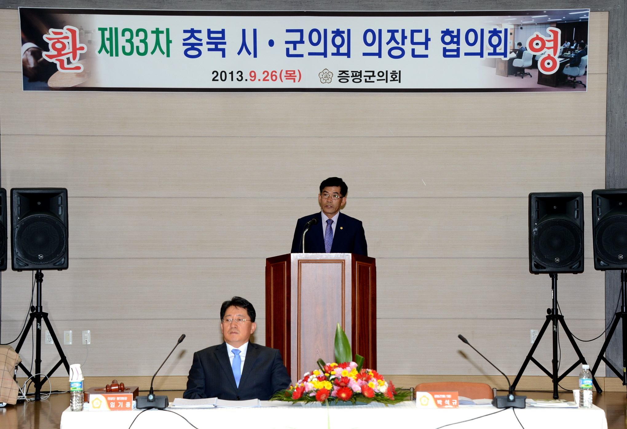 증평군의회(의장 박석규)는 26일 보건복지타운 내 위치한 노인복지관에서 도내 12개 시·군 의회 의장단이 참석하는 제33차 충북 시·군의회 의장단협의회(협의회장 임기중)를 개최했다. [보도자료실 참조]