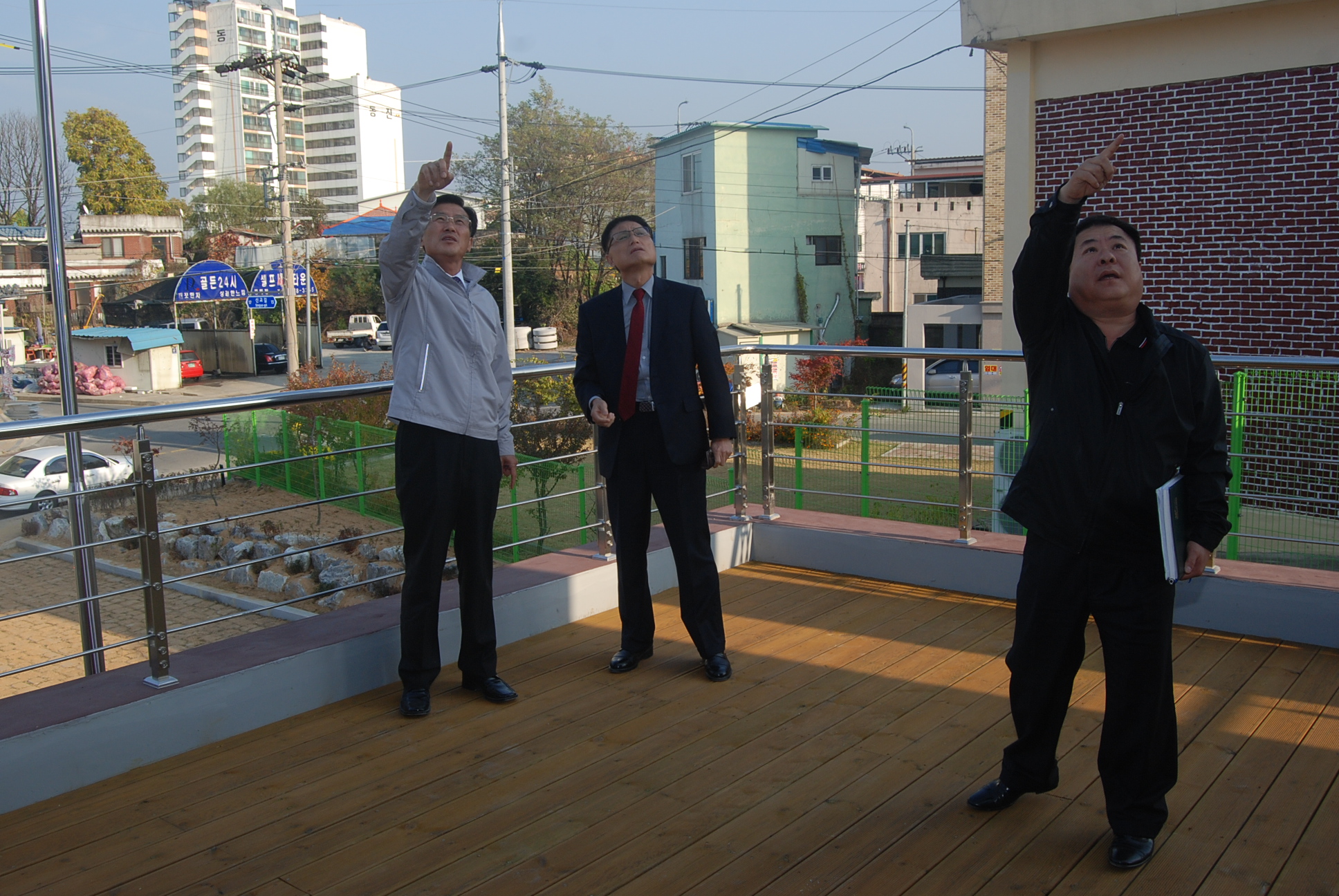 홍성열 증평군수가 20일 증평읍 신동리 282번지 일원 노인회관 신축공사 현장을 방문해 개장을 앞두고 시설물 점검에 나섰다. [증평보도자료실 참조]