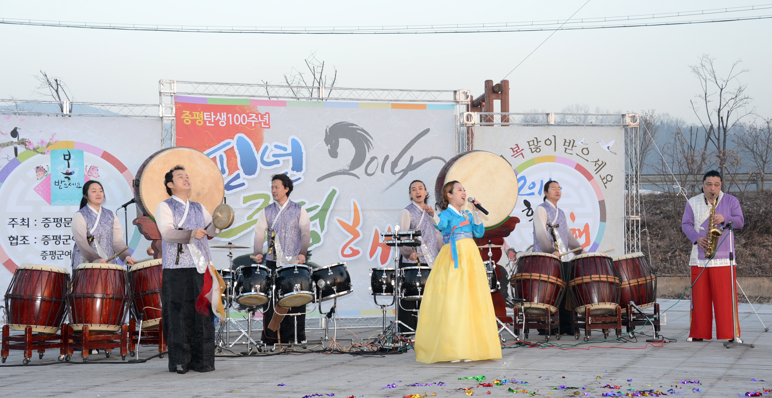 증평군은 새해 1월 1일 오전 7시 증평 삼기천 사곡교 일원에서 주민 1000여 명이 참석한 가운데 ‘2014년 갑오년 해맞이’ 행사를 가졌다[12월23일 보도자료 참조]