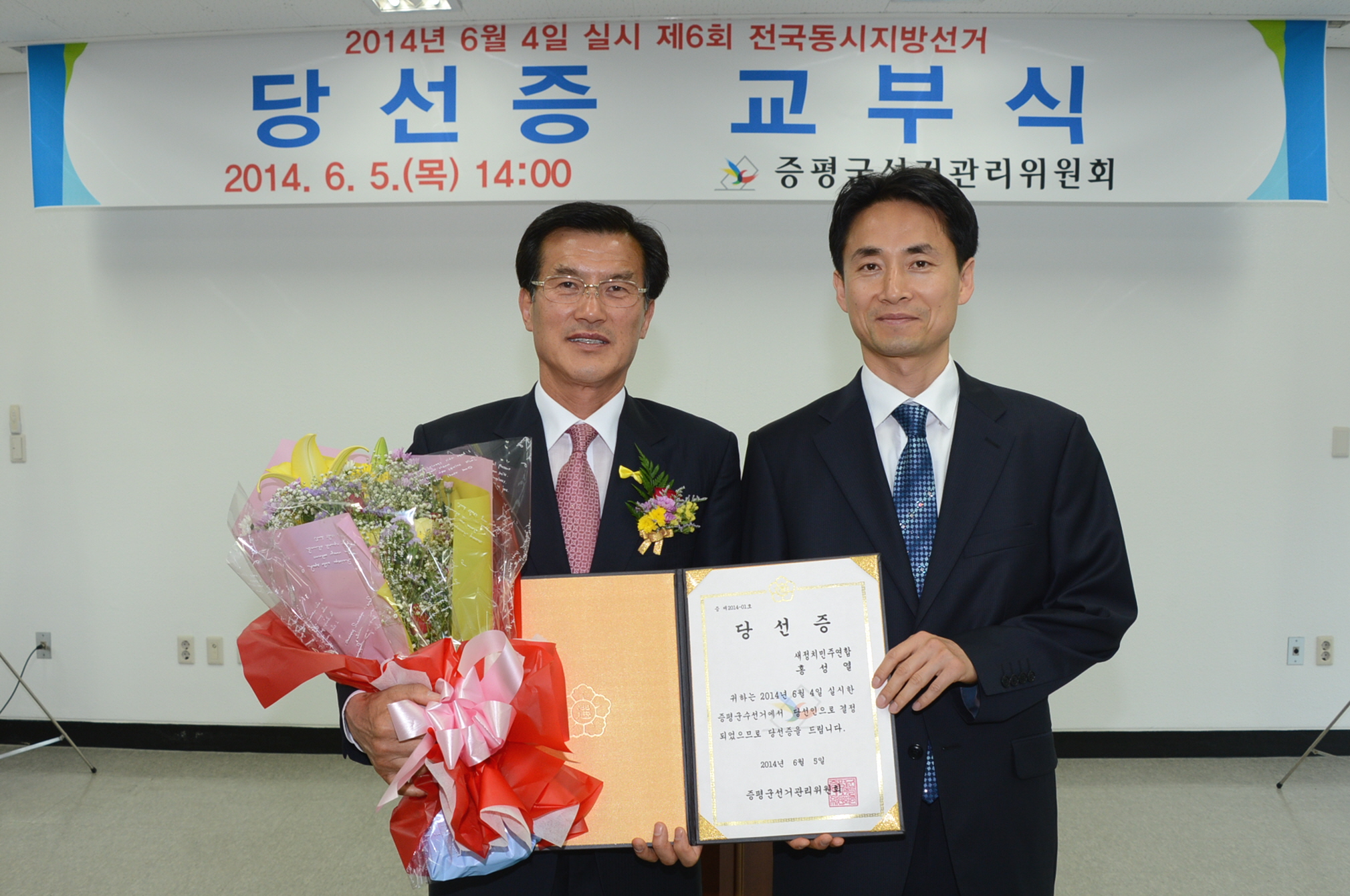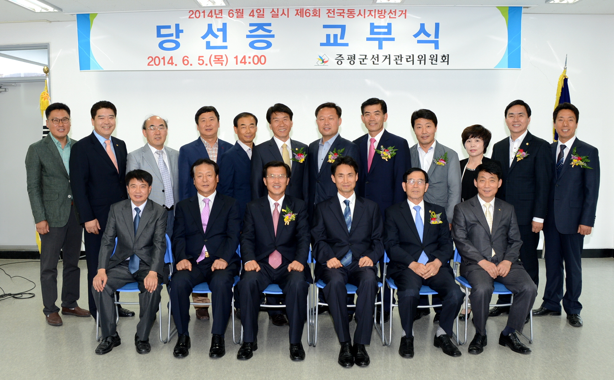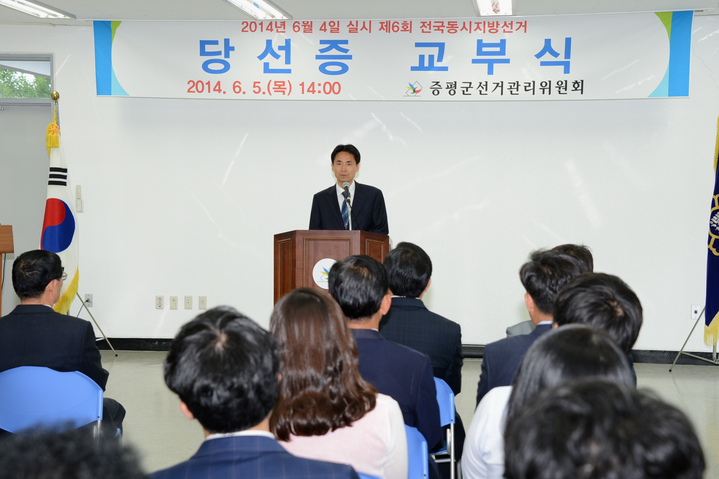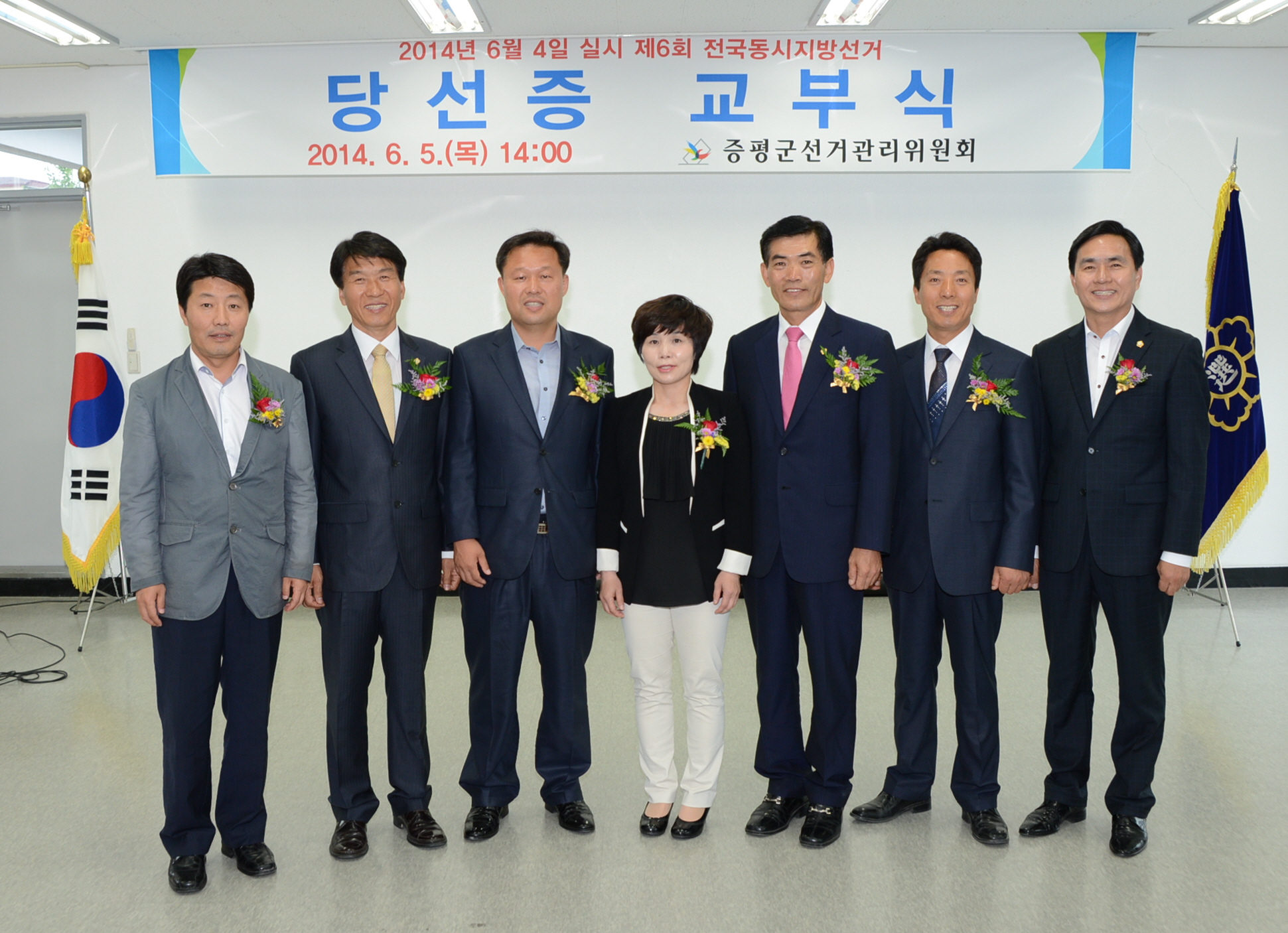 제6회 전국동시지방선거 당선증 교부식이 5일 오후2시 증평읍 초중리 증평군선거관리위원회 2층 회의실에서 열렸다.