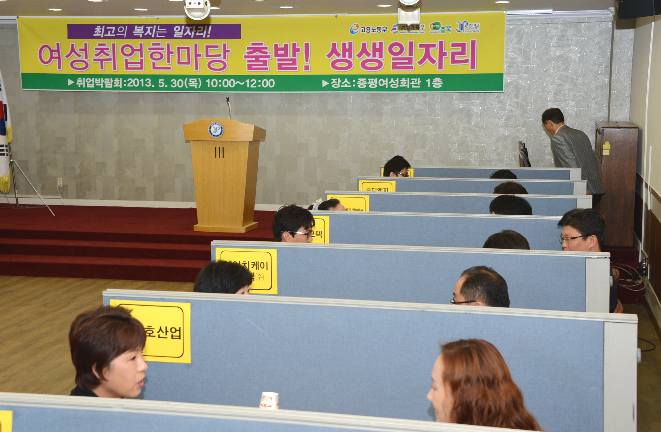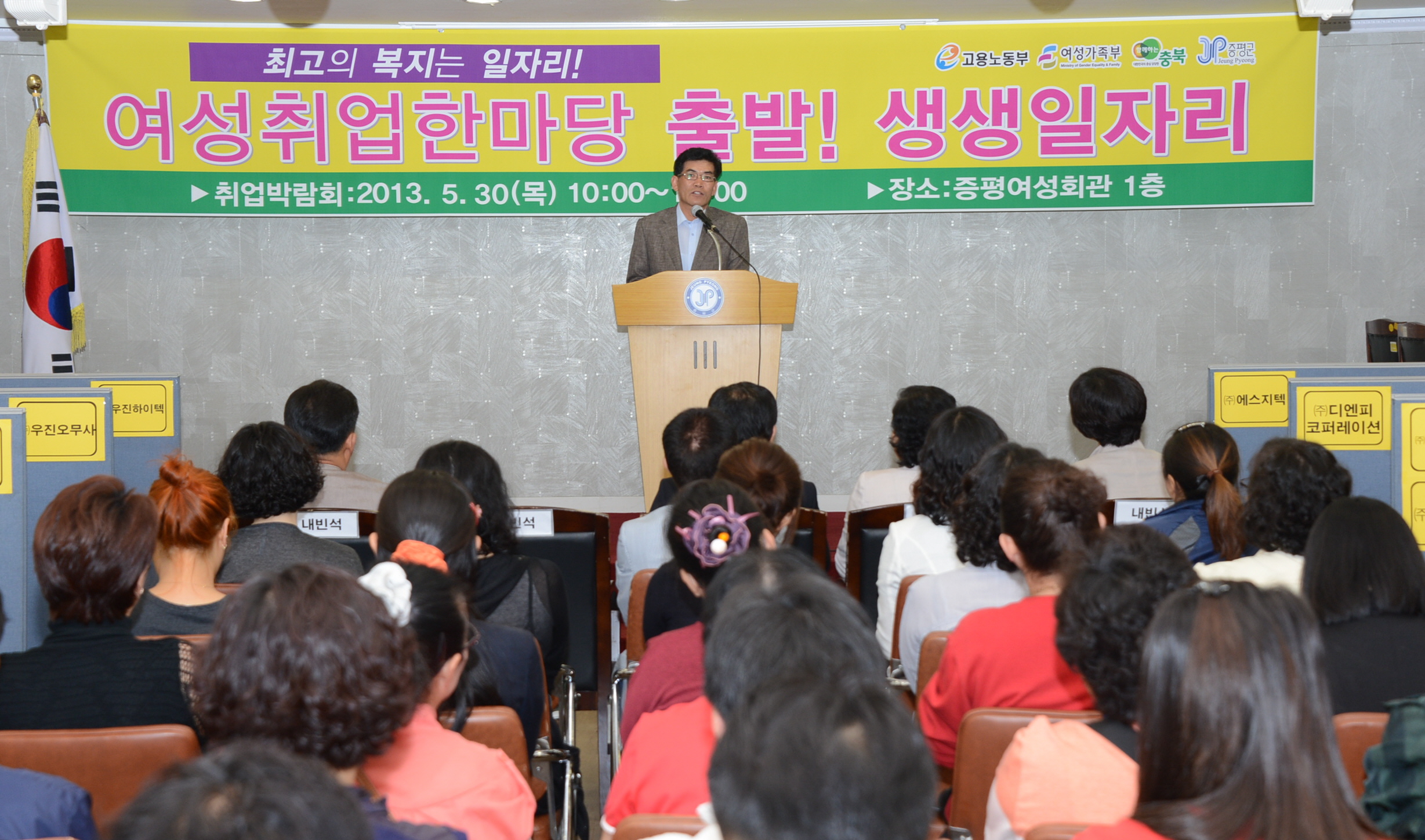 충북여성새로일하기지원본부 증평취업지원센터는 30일 오전 10시 증평여성회관에서 "2013년 여성취업한마당, 출발! 생생일자리" 행사를 개최했다. [보도자료실 참조]