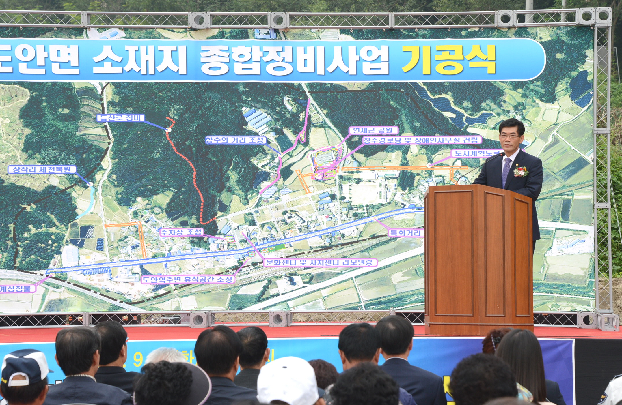 증평군은 도안면소재지 종합정비사업의 시작을 알리는 기공식을 9일 연제근공원 조성공사 현장내(옛, 도안농장부지)에서 가졌다. [보도자료실 참조]