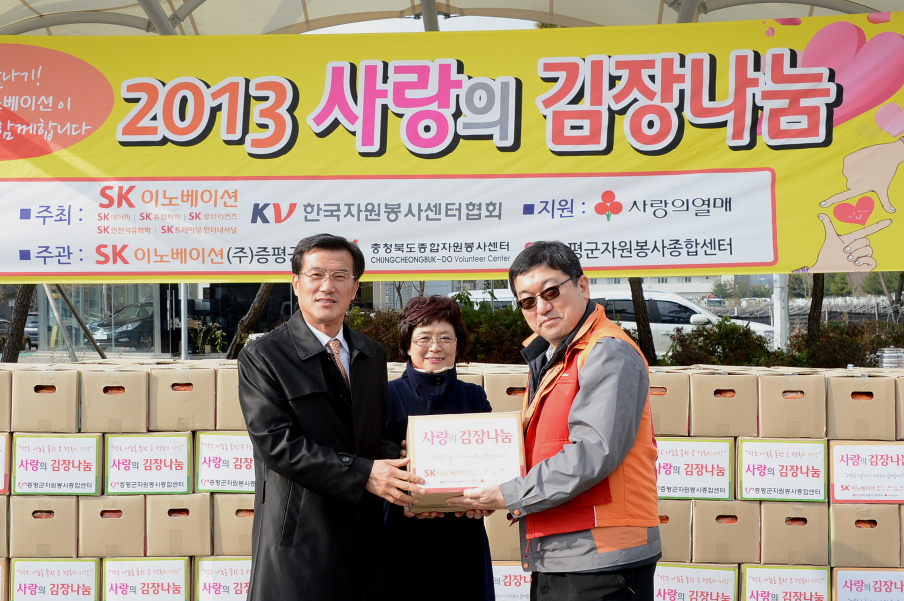 증평군자원봉사종합센터(센터장 김남순)와 SK이노베이션(공장장 김형욱)은 19일 오후 1시30분부터 증평문화센터 야외광장에서 ‘2013 사랑의 김장나누기 행사’를 실시했다. [보도자료실 참조]