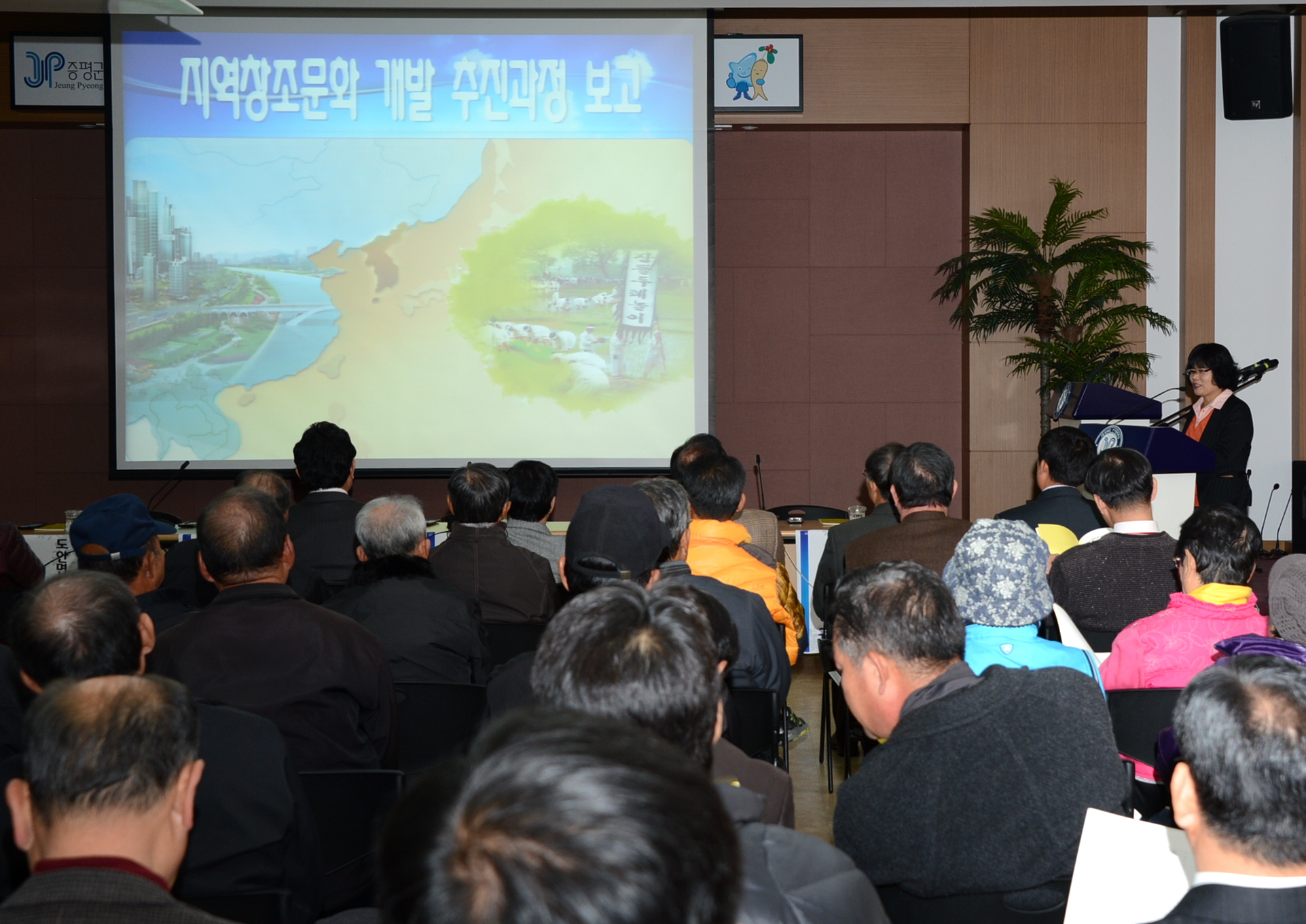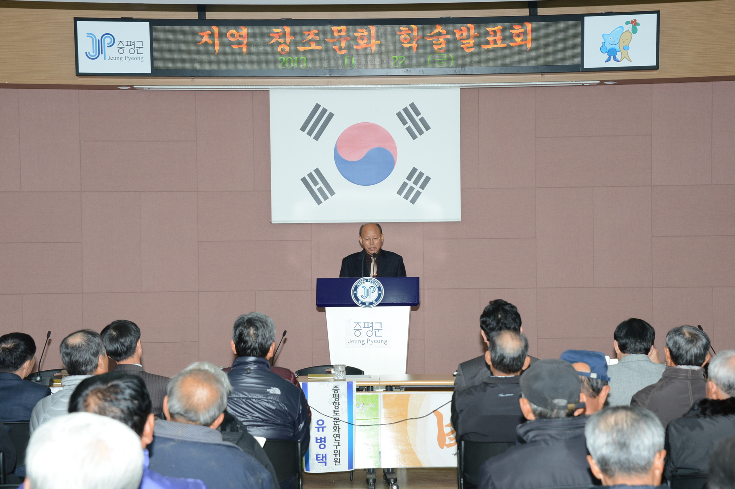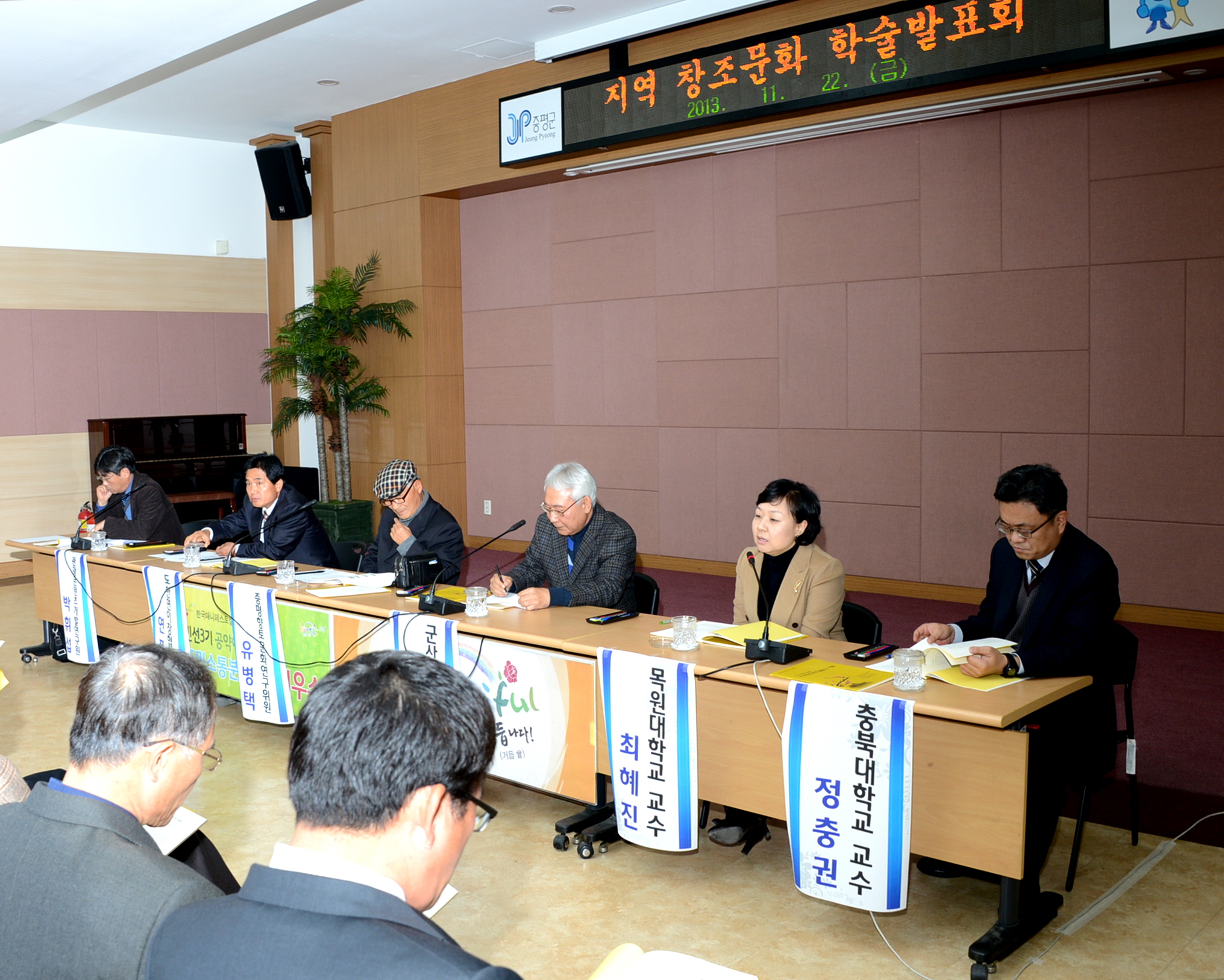 증평군에서는 22일 오후3시에 군청 대회의실에서 향토문화연구회원 및 주민 등 200여명이 참석한 가운데 증평향토문화연구회(회장 권성업)주관으로 ‘지역창조문화 학술대회’를 개최됐다. [보도자료실 참조]