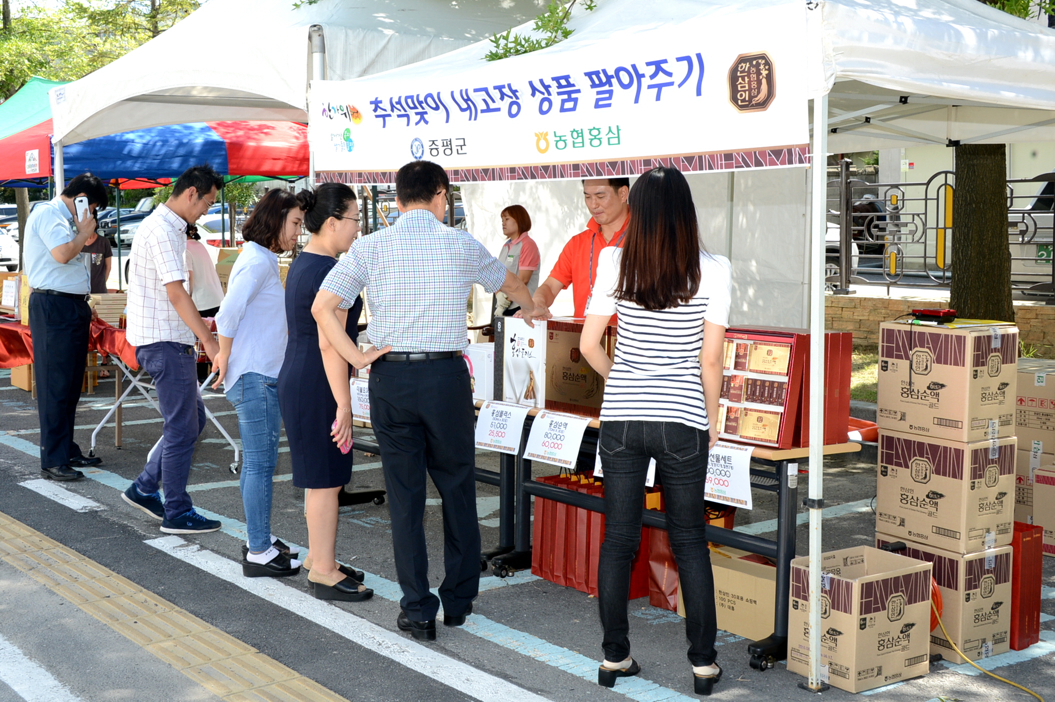 증평군은 민족 최대의 명절인 추석을 맞아 ‘내 고장 상품 팔아주기’ 운동을 28일 군청 주자창에서 진행했다. [보도자료실 참조]