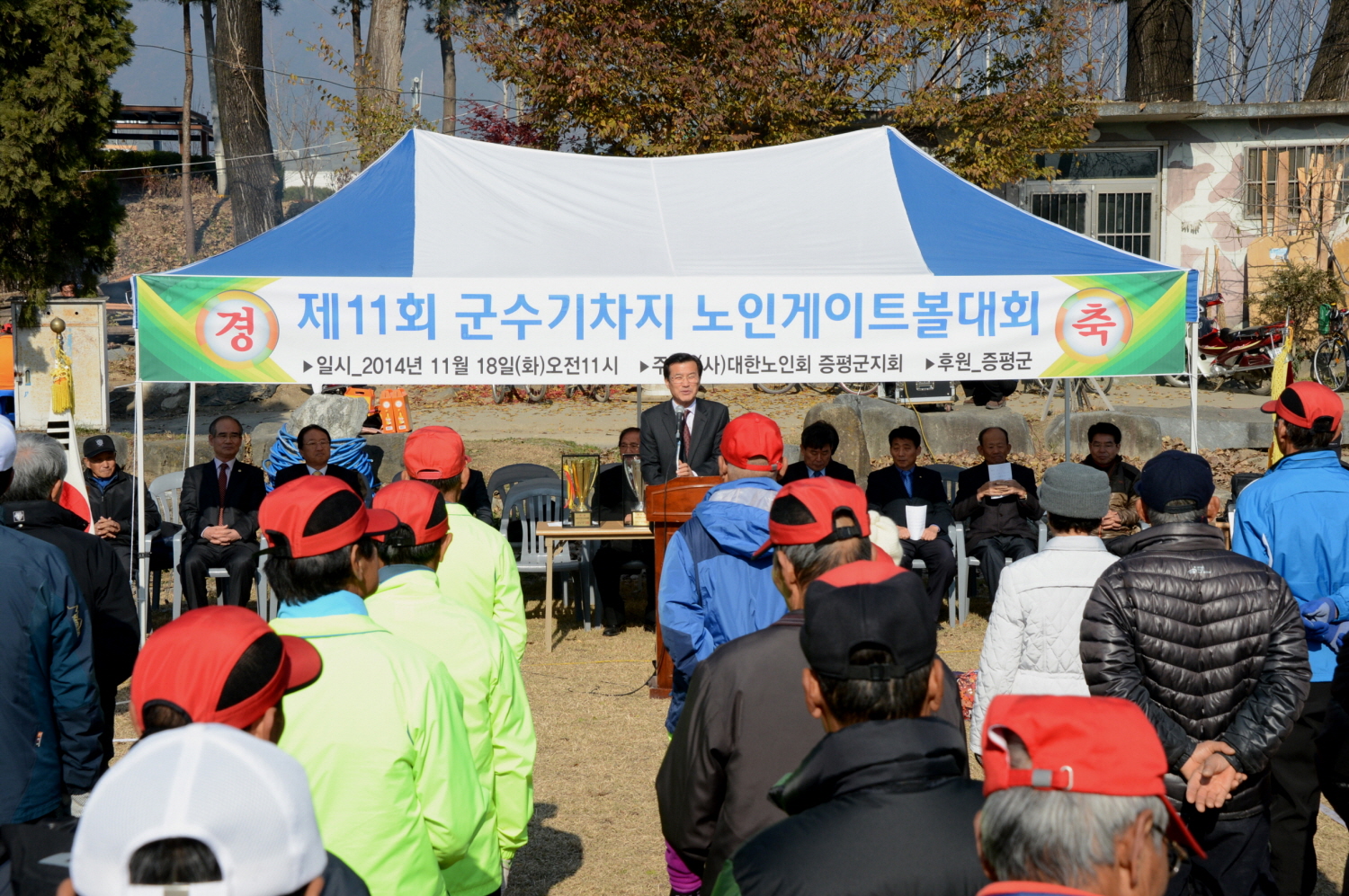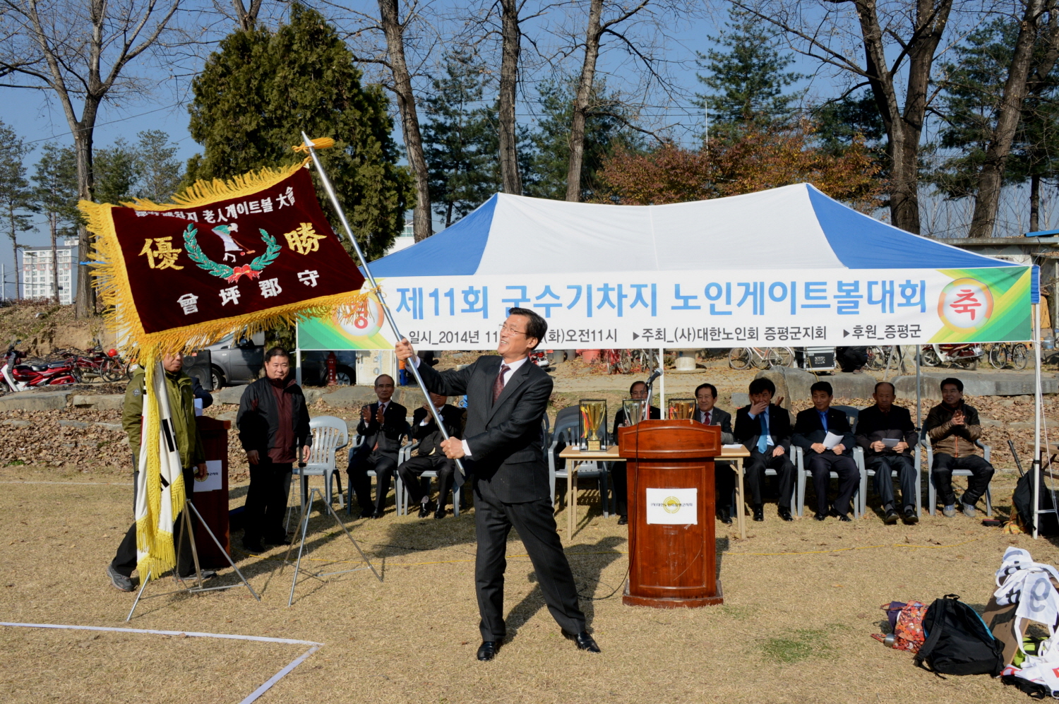 제11회 군수기자치 게이트볼대회가 18일 홍성열 증평군수, 지영섭 군의장을 비롯해 김재성 대한노인회증평군지회장, 게이트볼 회원 등 총 150여명이 참석한 가운데 보강천 잔디구장에서 개최됐다. [보도자료실 참조]