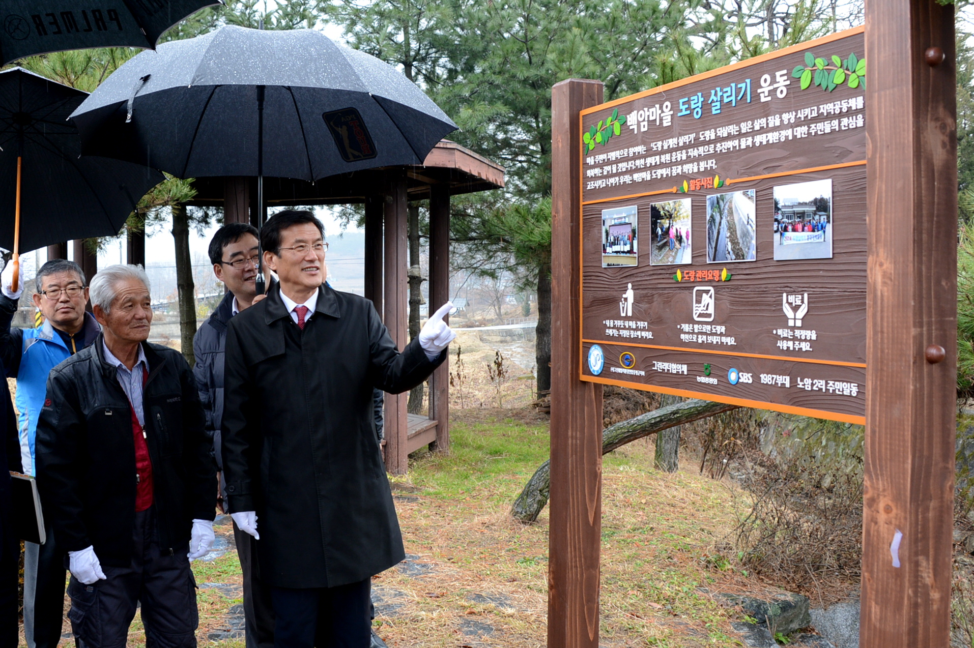 증평군은 28일 10시30분 노암2리 일원에서 홍성열 증평군수, 그린훼밀리환경연합증평군지부, 마을주민 등 100여명이 참석한 가운데 백암천과 남하1리 한천 도랑살리기 사업완료 현판식을 가졌다. [보도자료실 참조]